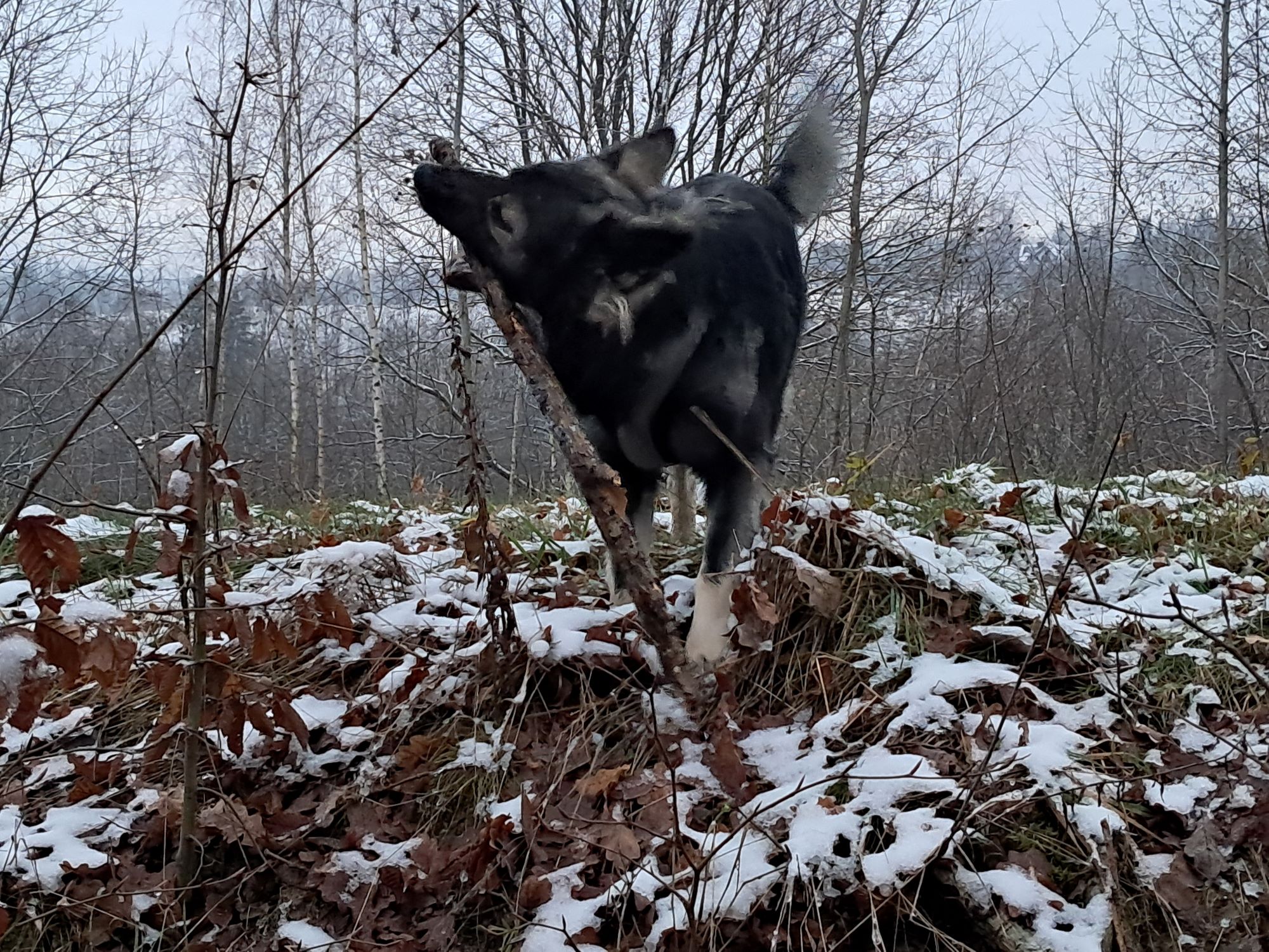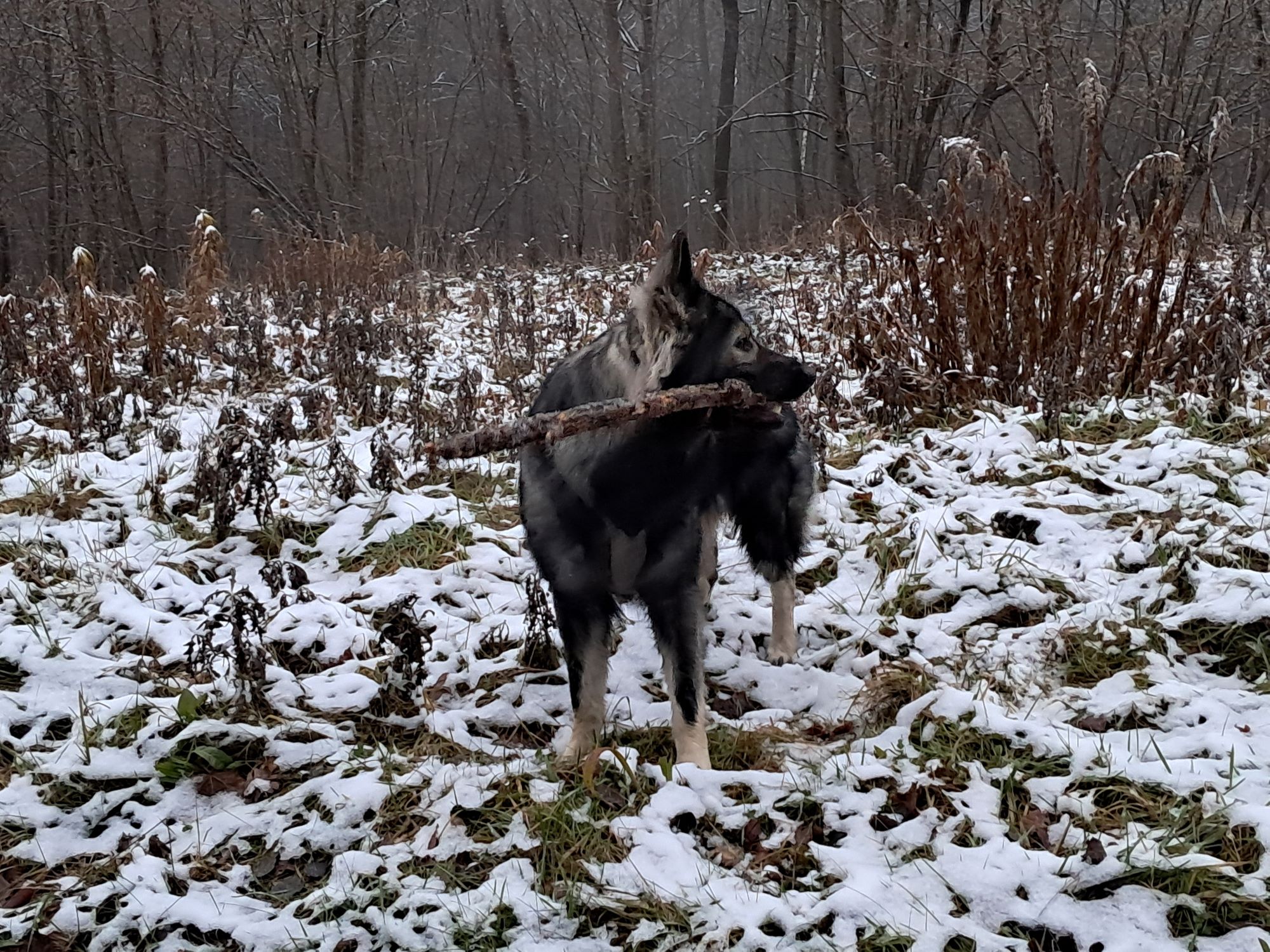 Był trening, były pieszczoty, pora na zabawę. Ta ulubiona Hugusia, nie licząc aportowania piłeczki i brodzenia w wodzie, to wynajdywanie i targanie ze sobą patyków. Im większy, tym lepszy. Czasem znajduje całkiem pokaźny konar i wydając z siebie dziesiątki dziwacznych dźwięków próbuje go nieść balansując ciałem. Patrząc na zmagania Huga nie raz dochodzę do wniosku, że chętnie bym się z nim zamieniła. Bo poranny spacer to również czas, kiedy mogę spokojnie pomyśleć o pracy, o Dzieciach i zwykłych codziennych historiach. To także moment na wspomnienia. O Rodzicach. O chwilach, które już nigdy nie wrócą. Czasem te refleksje skroplą się w oczach, a ja patrząc na psiaka i jego beztroskę cieszę się, że jestem. Tu i teraz.