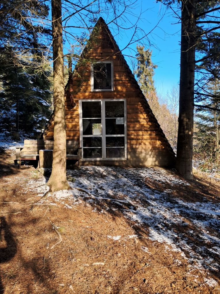 Idąc dalej dochodzimy do granicy lasu, przy której znajduje się niewielki domek na wynajem. Domek w stylu szałasu może nie jest tym wymarzonym na dłuższy urlop, ale jest fantastycznym rozwiązaniem dla turystów przemierzających Główny Szlak Beskidu Wyspowego (GSBW) – Beskidzkie Wyspy. Zwłaszcza dla tych, którzy chcą zdobyć odznakę diamentową, przyznawaną za jednorazowe przejście całego Szlaku w czasie nieprzekraczającym 16 dni!