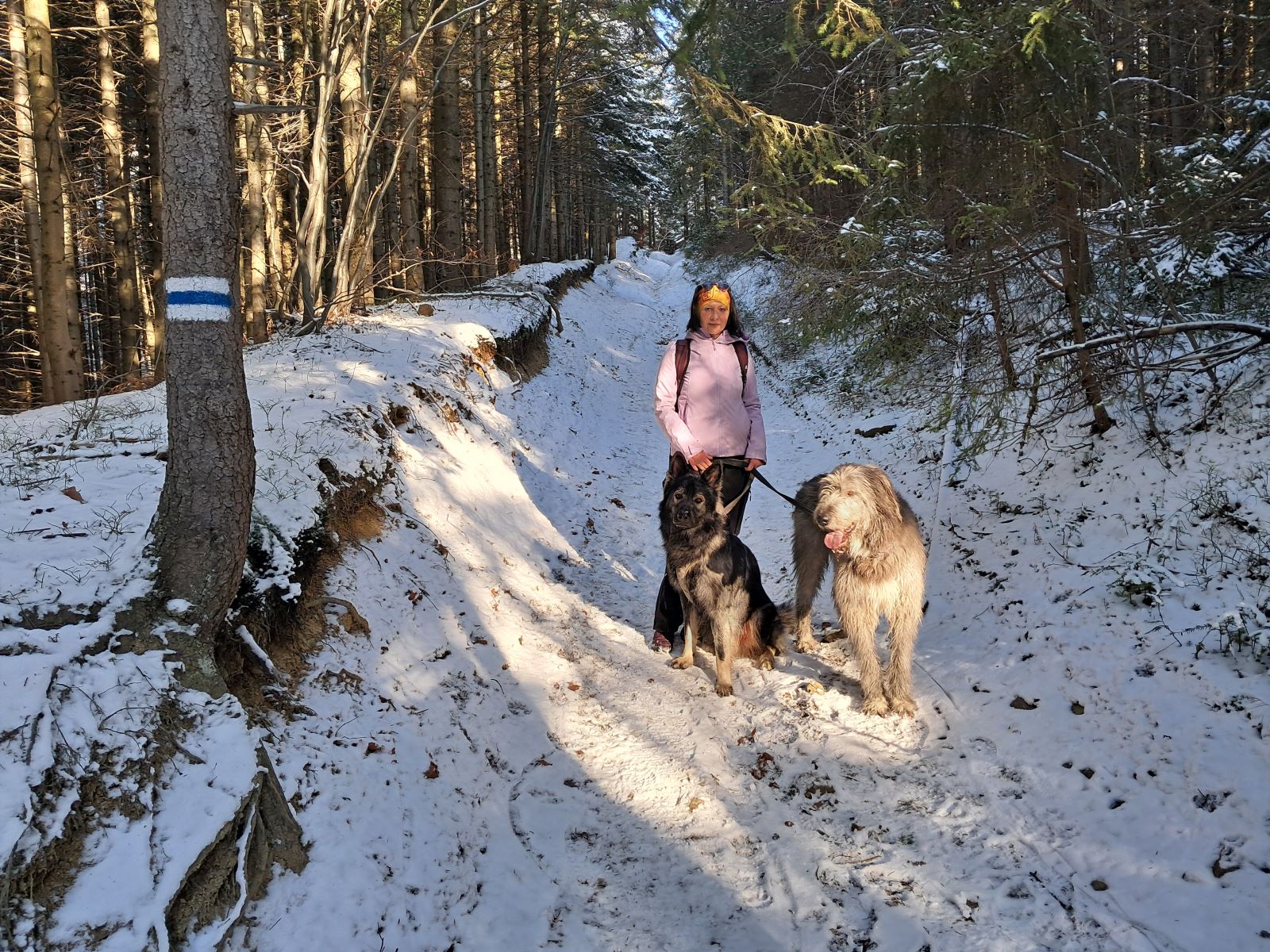 Wybawieni i nasyceni widokami schodzimy niebieskim szlakiem do Jurkowa, spotykając po drodze kolejnych „wycieczkowiczów”, również tych z psami.