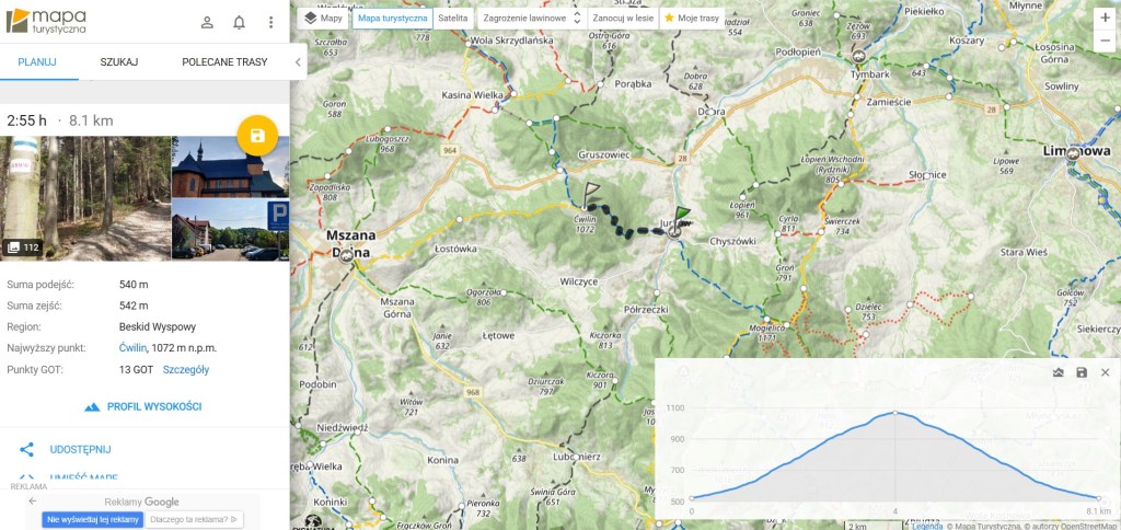 Na odcinku ok. 2,5 km suma podejść wynosi niewiele ponad 400 m. Jest to trasa, którą bez większych problemów pokonają początkujący turyści, rodziny z dziećmi, czy mniejsze psiaki. Zresztą większość tras/szlaków Beskidu Wyspowego jest właśnie taka. I do tego psyjazna;)