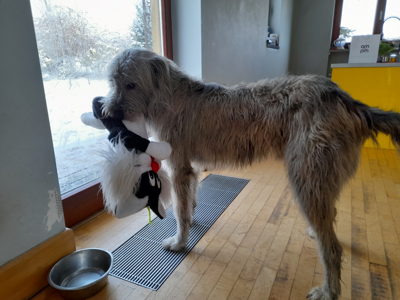 Lucky nie lubi szarpaków, piłeczek, ani żadnych aportów. Po stracie swojego pluszowego tygryska, którego po złości rozgryzł Hans, dostał pluszaka godnego swojego rozmiaru;)