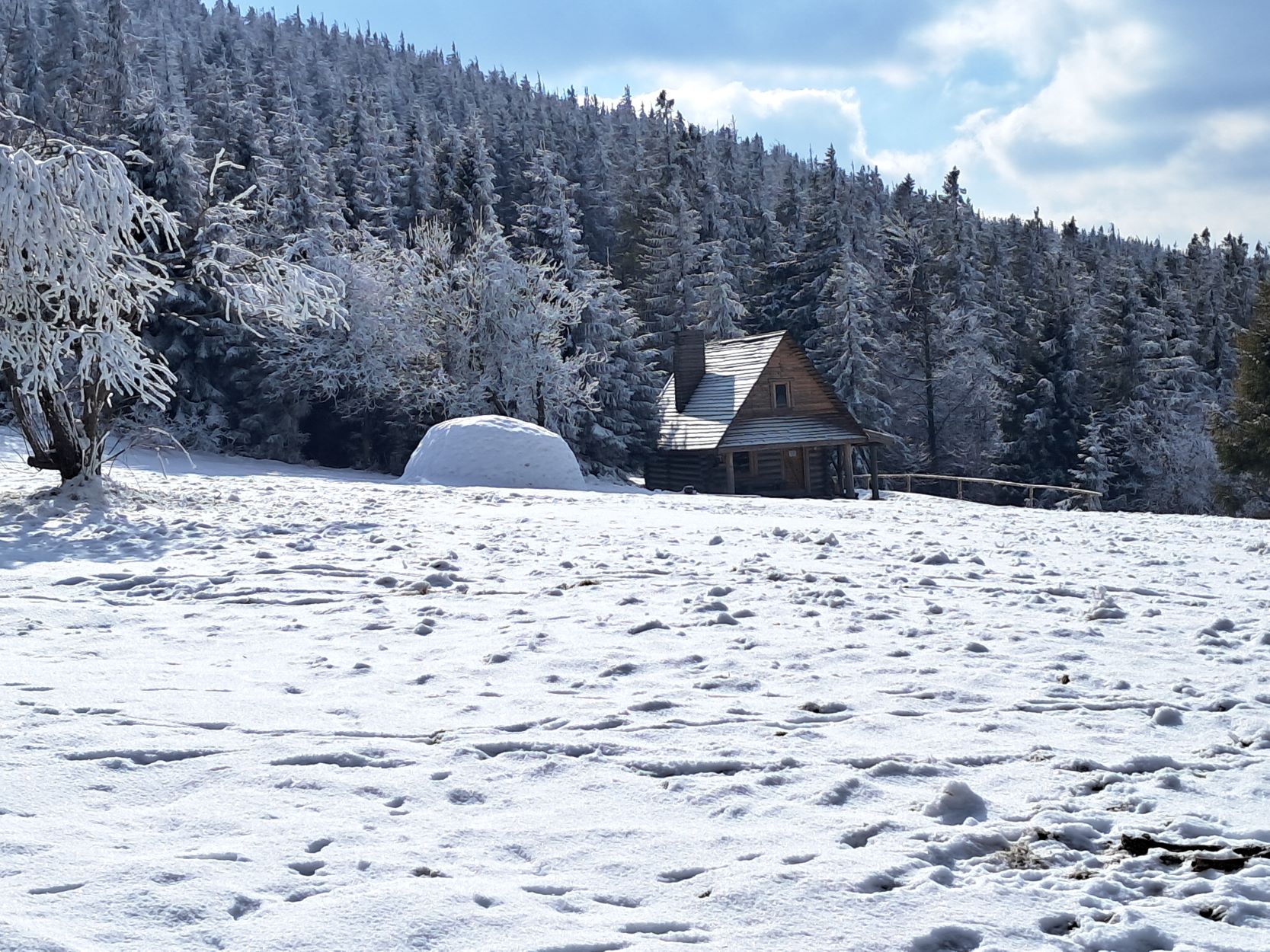Polana Gorc Kamienicki, bo o niej mowa, położona jest na wysokości 1120-1150 m.n.p.m., na północnym grzbiecie Gorca. Przy dobrej widoczności rozciąga się z niej szeroka panorama na Tatry, Magurę Spiską, Pieniny, a także część Beskidu Wyspowego i Sądeckiego. Niestety dziś nie mieliśmy możliwości podziwiania wszystkich wspomnianych pasm górskich, ale widok wieży na Gorcu oświetlonej południowym słońcem oraz skrzący się śnieg na polanie i drzewach i tak wywarł na nas ogromne wrażenie.