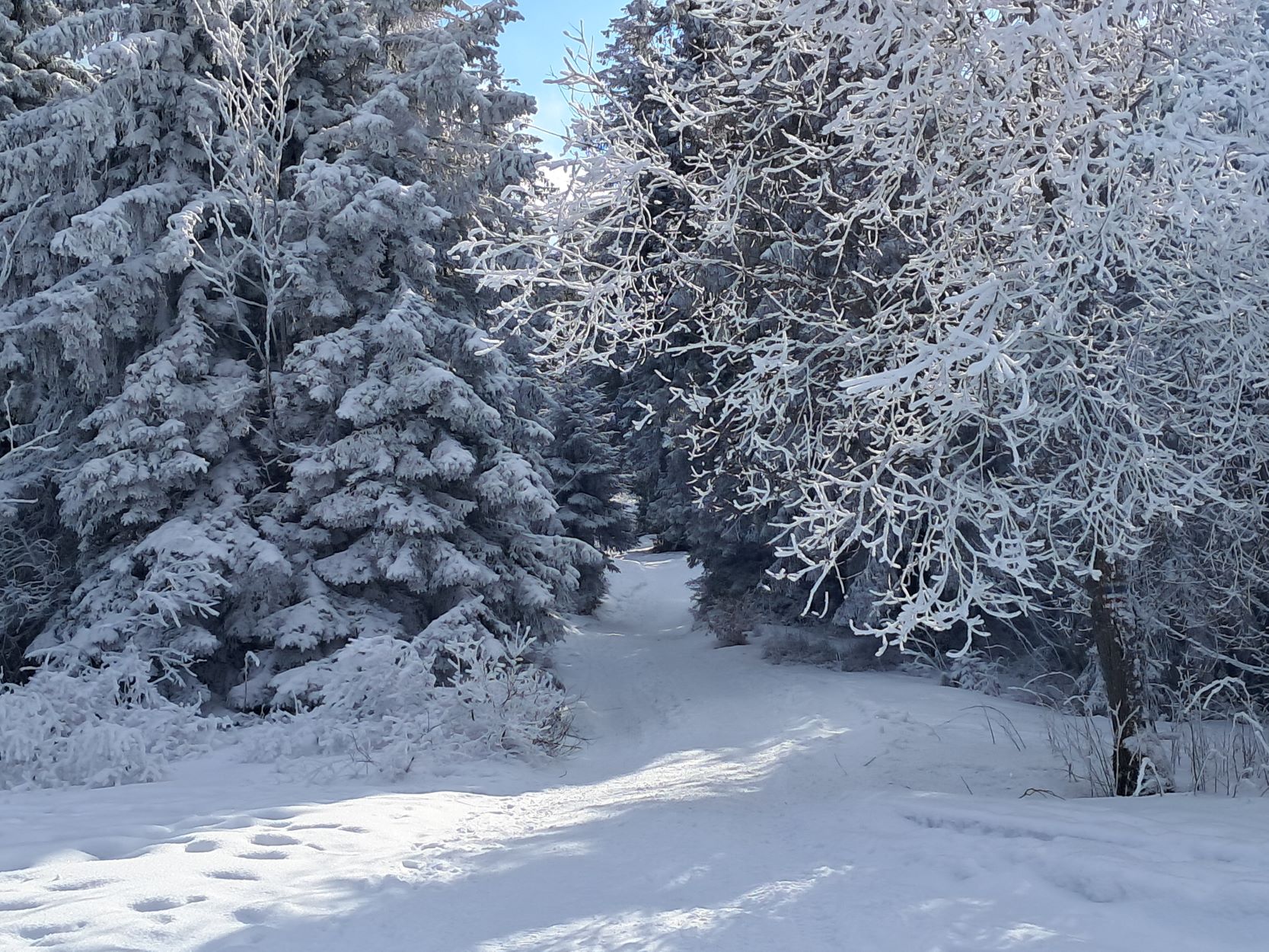Pomimo pięknej, mroźnej pogody czas wracać. A schodzimy dalej czerwonym szlakiem, dzięki któremu zatoczymy kółeczko i dojdziemy do samego parkingu. Po drodze wiodącej, a jakże przez las, mijamy Wierch Bystrzaniec oraz punkt widokowy na Tokarce, z którego widać oddalający się szczyt Gorca.