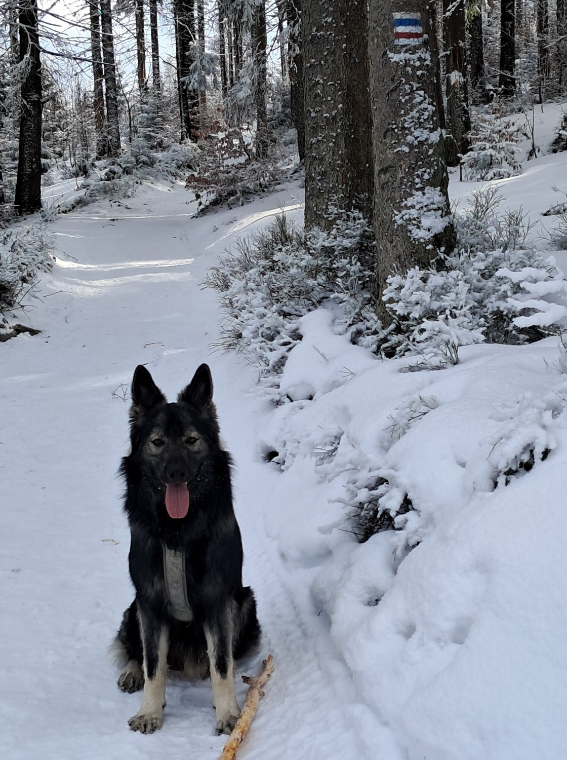 Trasa bardzo fajna, wynosząca 9,5 km i sumie podejść 635 m. Jak zawsze poniżej zamieszczam mapę z portalu mapa-turystyczna.pl, na którym wprowadzono nowość: wstęp dla psów, co czyni ten portal bardzo psyjaznym🙂 I jeszcze jedna ciekawostka: wycieczka na Gorc jest pierwszą wycieczką Lucky’ego w Gorcach!