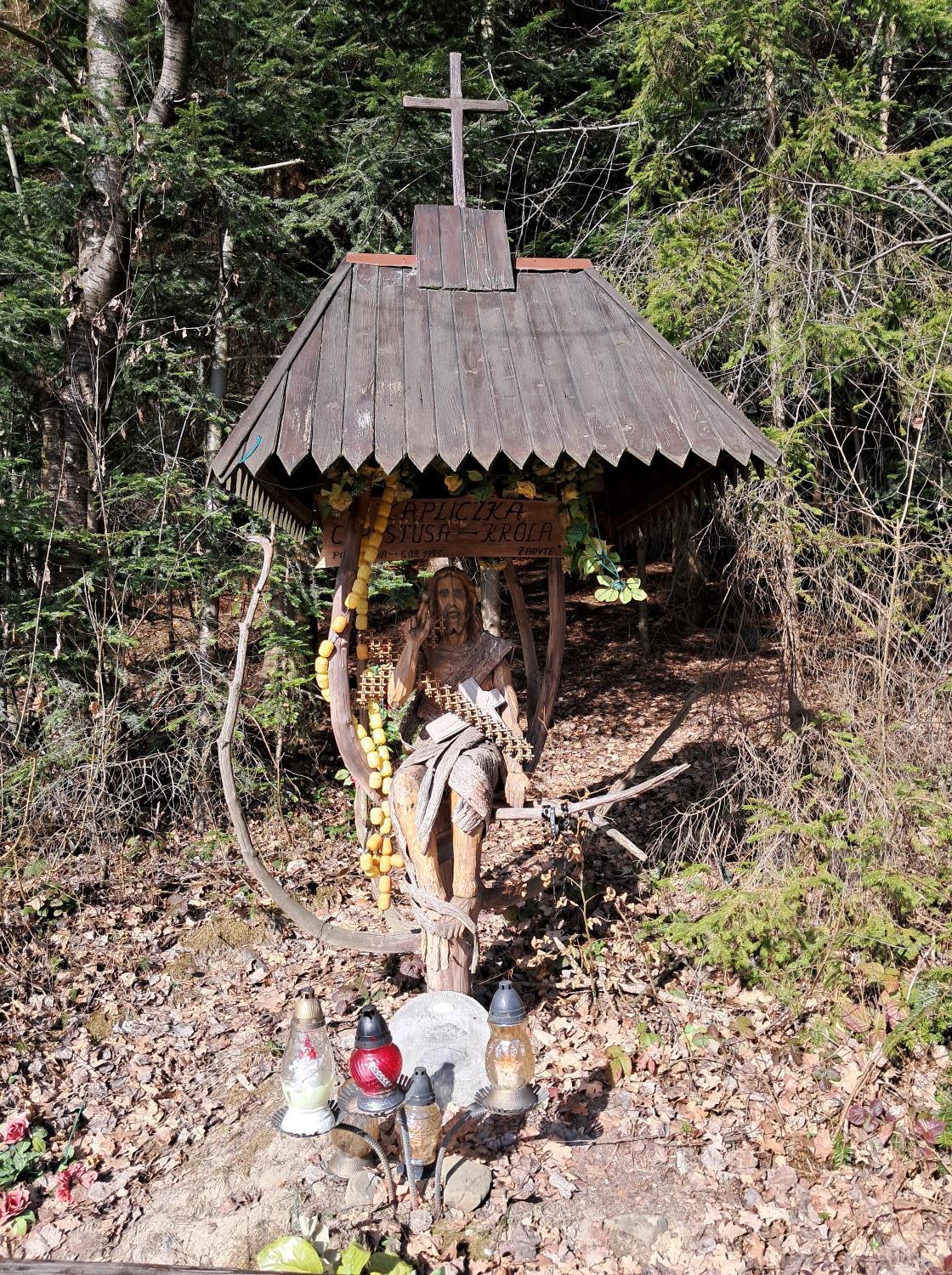 Szlak żółty z Lubonia do Rabki o nazwie Perć Borkowskiego przebiega przez rezerwat przyrody nieożywionej, który został utworzony dla ochrony największego w Beskidzie Wyspowym osuwiska fliszowego z gołoborzem i ciekawymi formami geologicznymi, zwanymi Dziurawymi Turniami. Ponieważ jest to rezerwat, Hugo wejść tam nie może😦