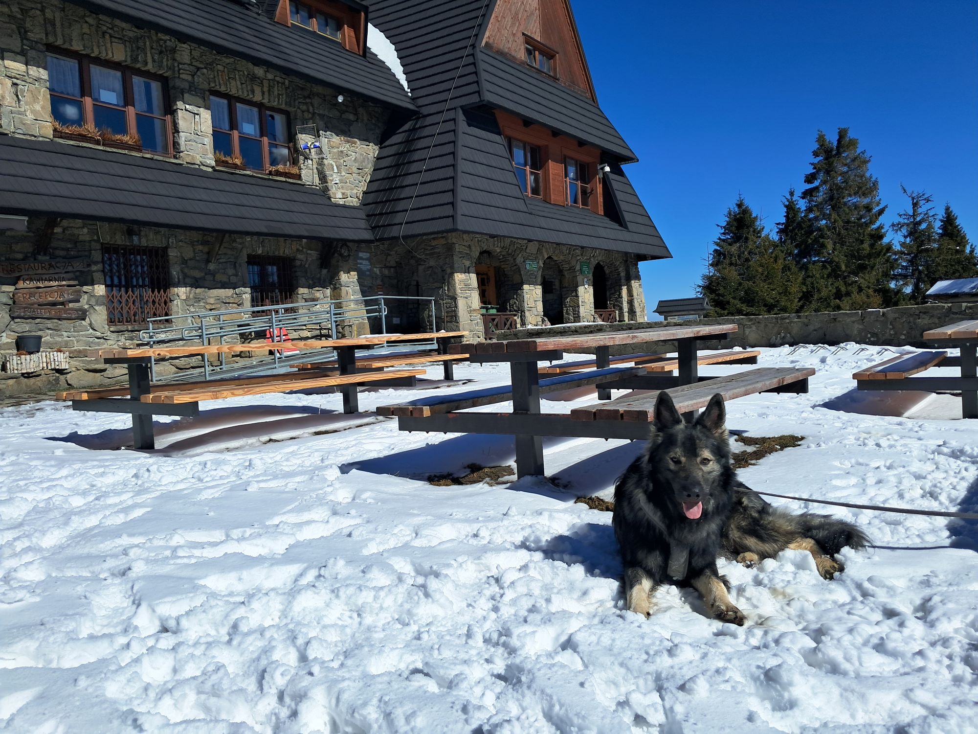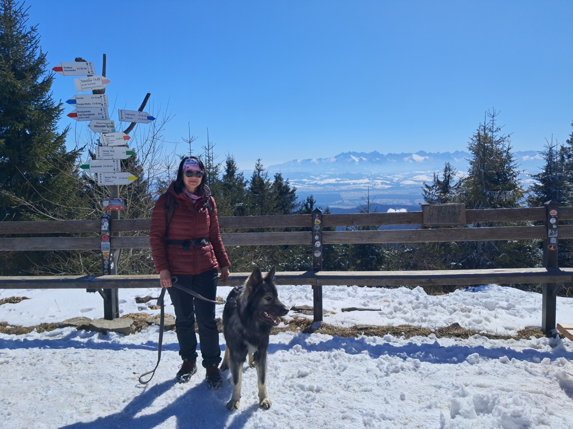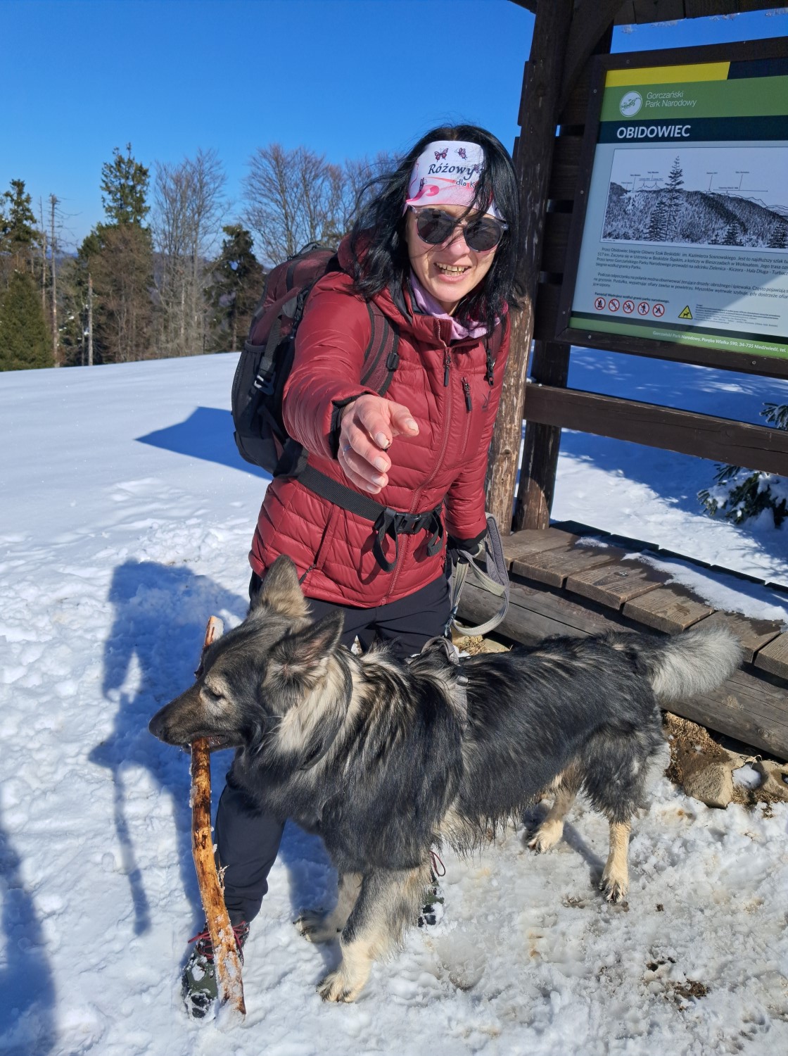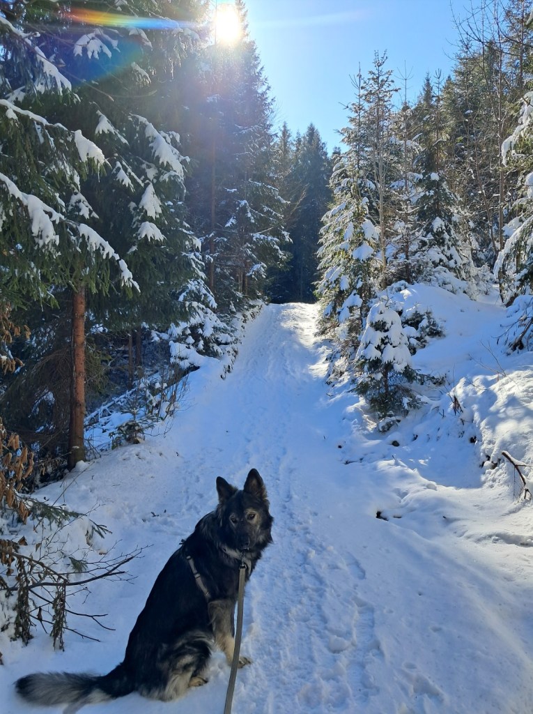 Wycieczka bardzo udana. Ja „zaliczyłam” Turbacz zimą, Hugo miał towarzystwo, a błąkające się pieski trafiły bezpiecznie do swojego domu. Przejście prawie 17km trasy, wraz z wszystkimi postojami i przygodami zajęło nam 5,5h. Ciekawe, co na to moja infekcja? Ale to okaże się w piątek😉