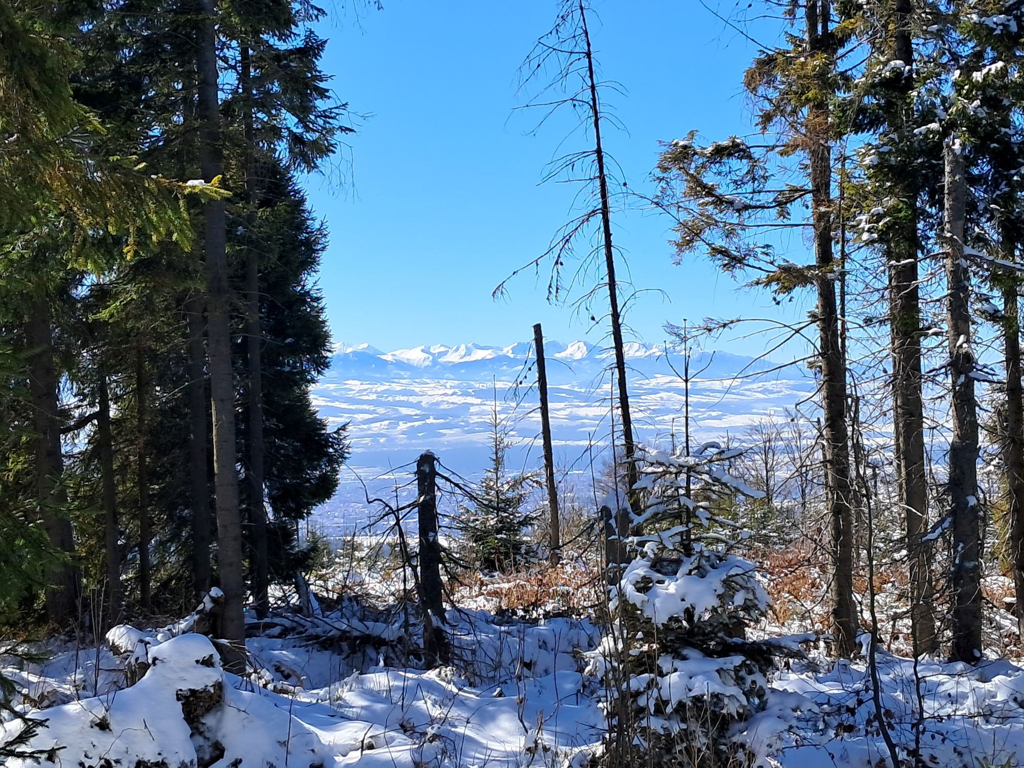 Czarnym szlakiem idziemy 3km do Bukowiny Miejskiej po drodze mijając Polanę Piszczałową, z której rozpościera się widok m.in. na Obidowiec (będziemy na nim wracając), a na południe – widok na Tatry.
