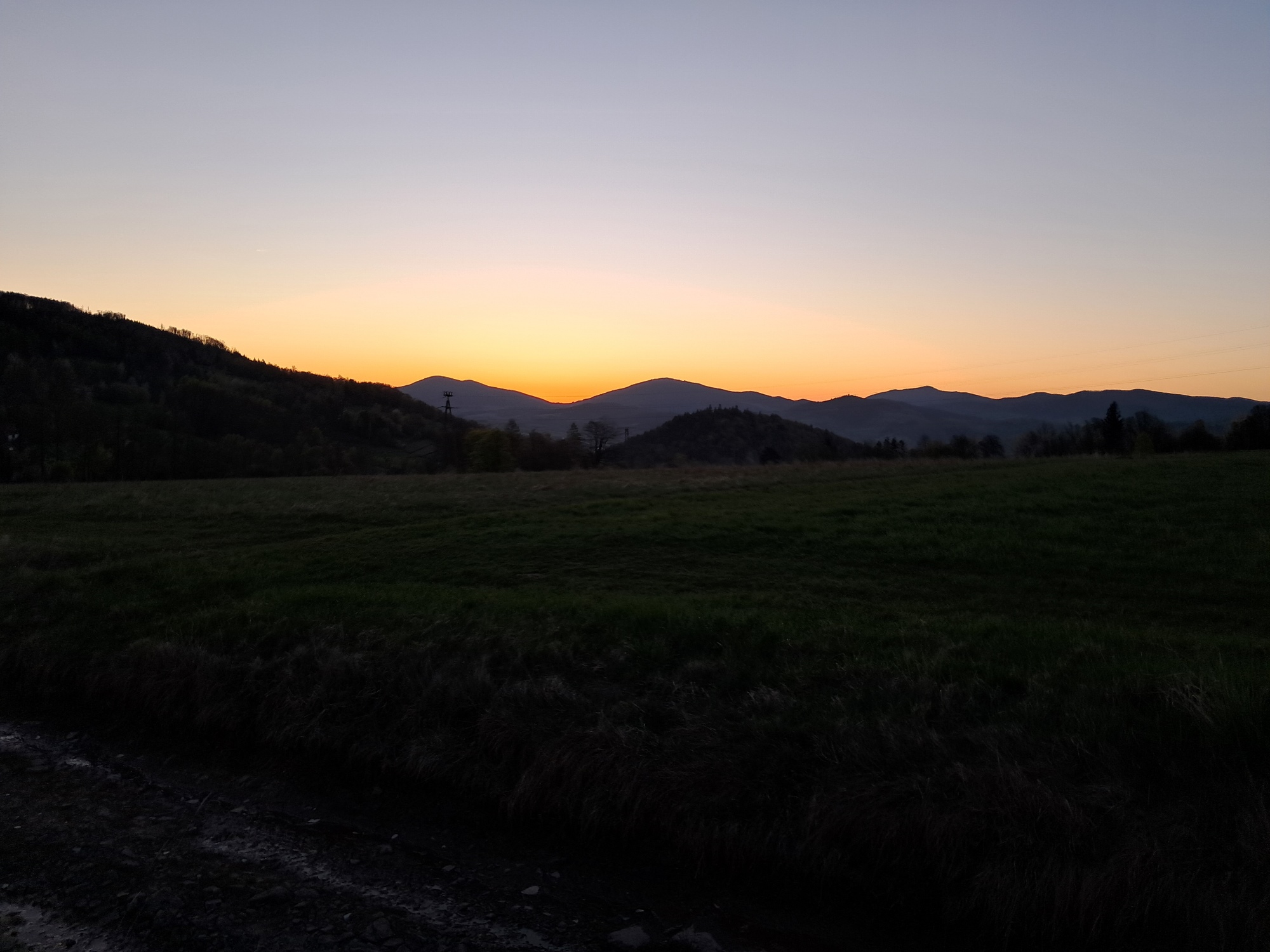 Na przełęczy jestem już z Hugo o 5.30, gdzie zostawiam samochód i kieruję się czerwonym szlakiem w stronę Lubonia oświetlonego brzaskiem słońca.