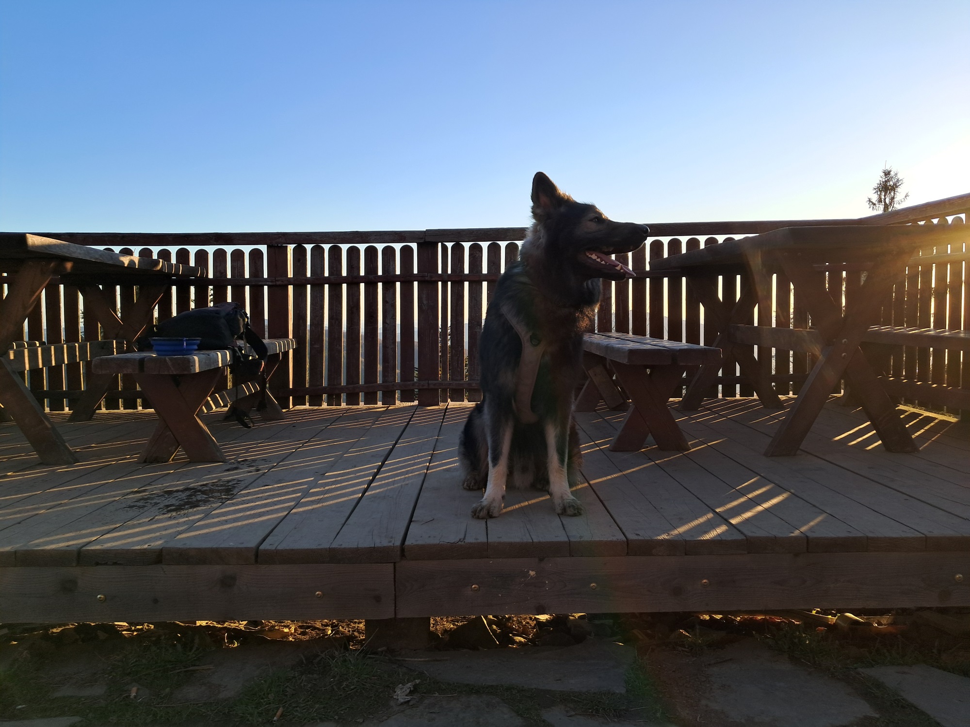 Na szczycie Lubonia, na platformie widokowej znajdującej się obok schroniska jestem z Hugo kilka minut po 6. Jesteśmy sami. Cudowną ciszę przerywa jedynie coraz głośniejszy świergot ptaków. Właśnie dla takich chwil warto wstać wcześniej, nawet w Święta.