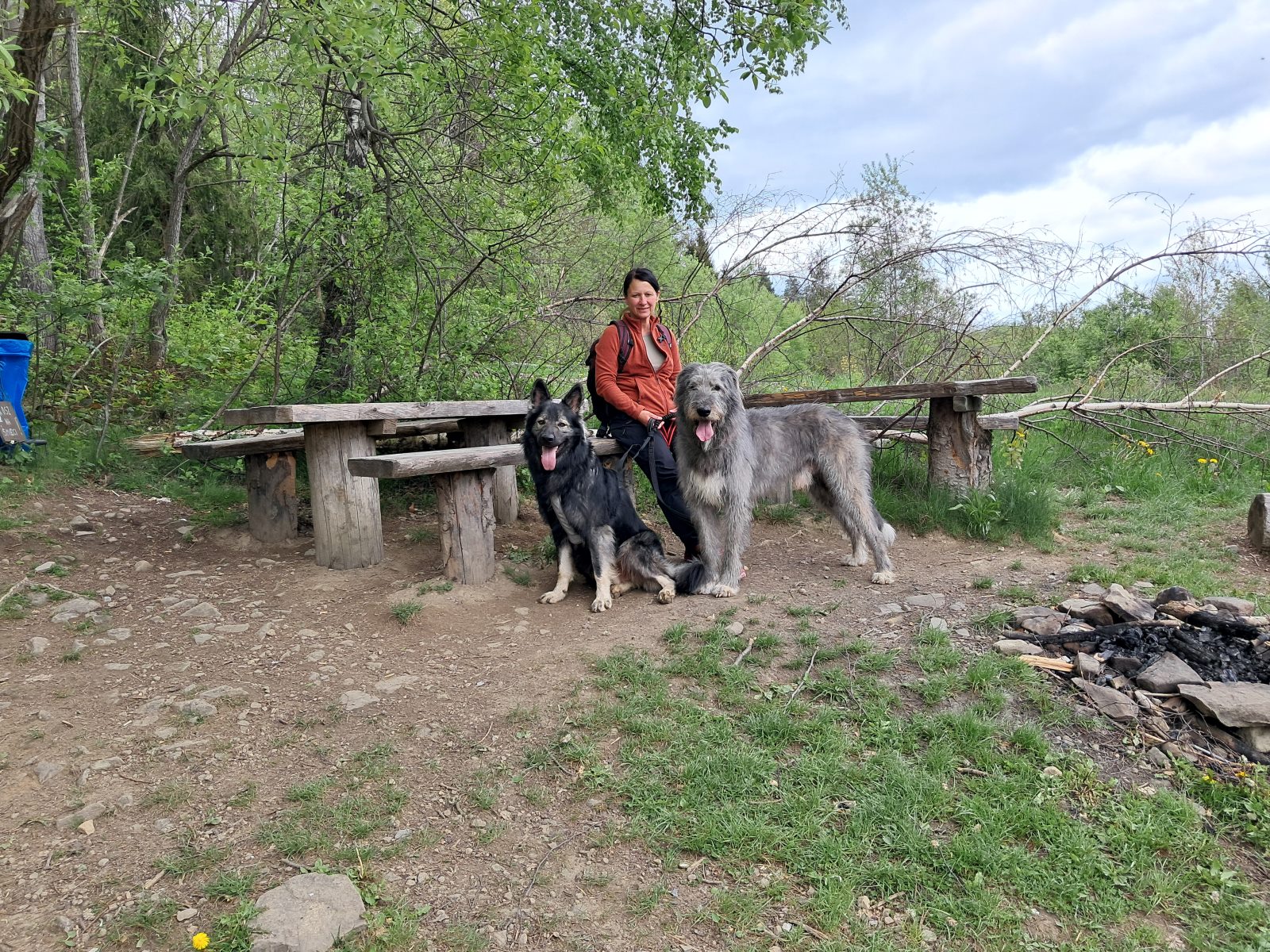 Wchodzimy na leśną ścieżką, przy której znajdują się stoły i ławy oraz miejsce na ognisko.