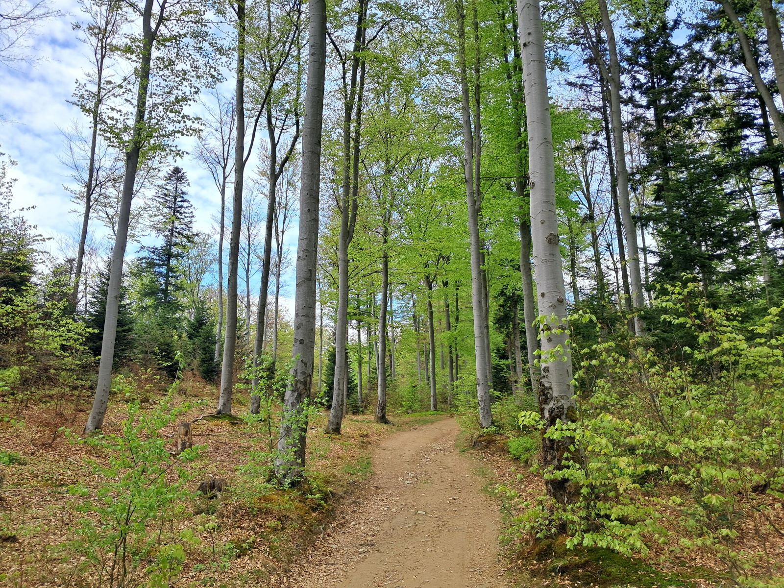 Wracamy z powrotem na najwyższy szczyt Śnieżnicy. Wybierając zielony szlak w stronę dwóch pozostałych szczytów, dojść można do Rezerwatu Przyrody Śnieżnica. Rezerwat utworzony został w roku 1968 w celu ochrony naturalnego fragmentu buczyny karpackiej. My wybieramy wspomniany na wstępie szlak niebieski, schodzący na Przełęcz Gruszowiec.
