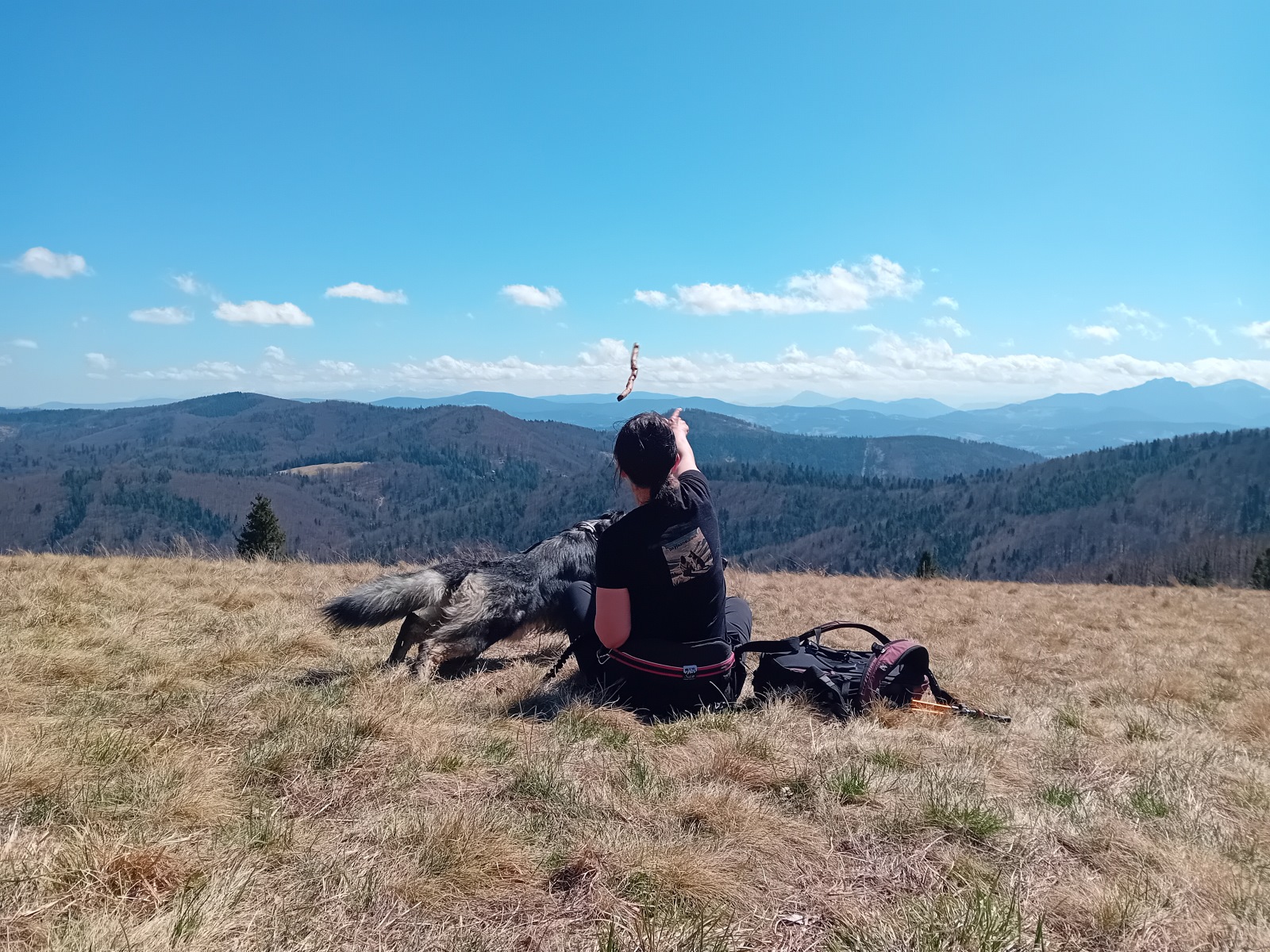 Wędrówki z psem polecam każdemu, kto uwielbia być w ruchu i spędzać czas ze swoim pupilem. Czas spędzony na wspólnym przemierzaniu kilometrów wzmacnia tę niesamowitą więź łączącą opiekuna z psem. To również czas, który można wykorzystać na dodatkowe szkolenie. Powtarzanie i utrwalanie komend w różnych miejscach uczy psiaka, że ma je wykonywać nie tylko na placu treningowym. Tak robię z Hugo, którego ekscytacja nowymi miejscami i rozsadzająca go energia sprawiają, że czasem zastanawiam się, czy aby na pewno ukończyliśmy szkolenie podstawowe z oceną bardzo dobrą😀