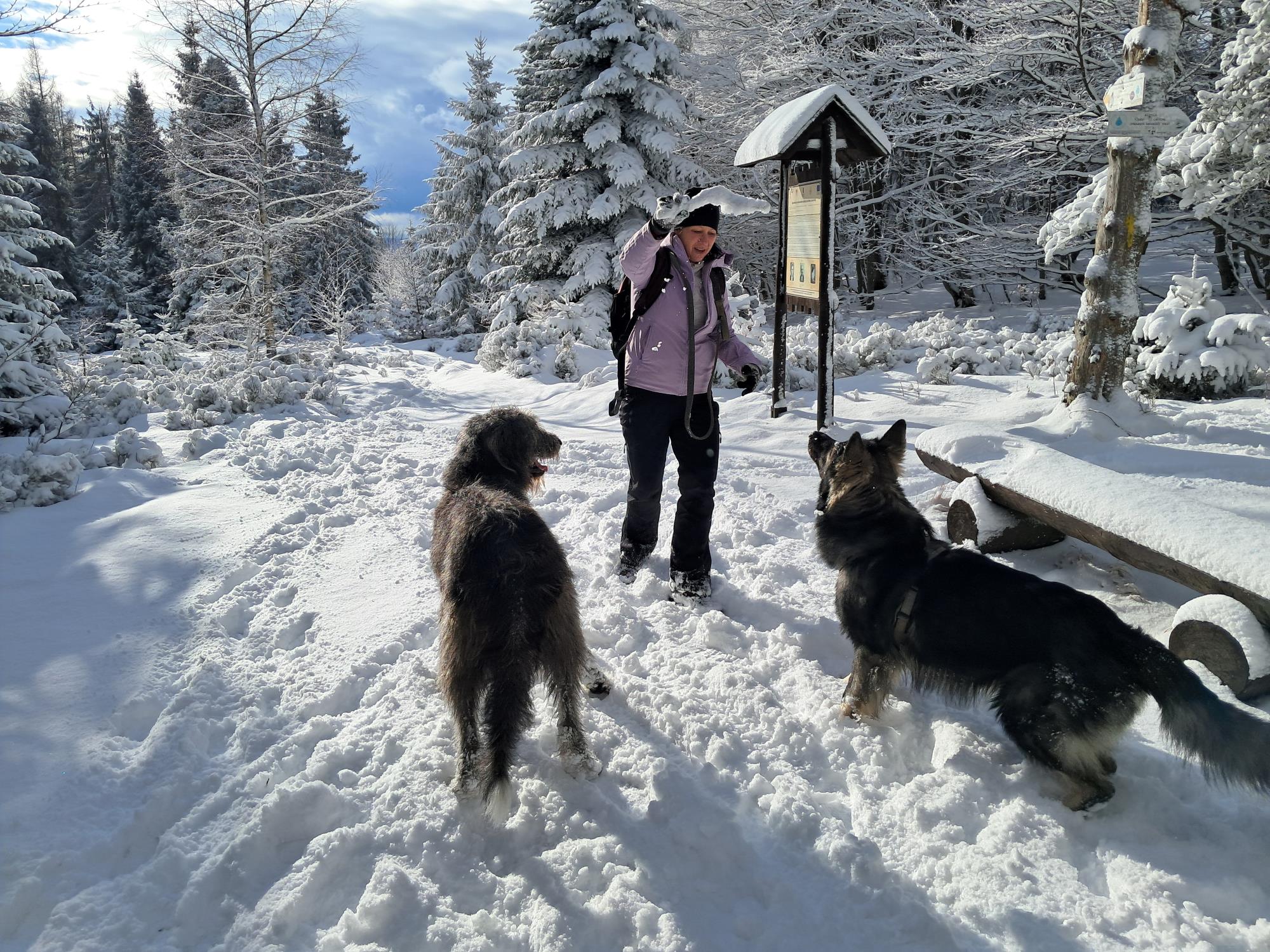 Trzeba też wiedzieć, że nie do wszystkich schronisk wejdziemy z psiakami. Z naszych dotychczasowych wędrówek bardzo miło zaskoczyły nas: Schronisko PTTK na Stożku, Schronisko PTTK na Rysiance i Schronisko PTTK na Hali Miziowej. Doceniamy zwłaszcza to na Rysiance, gdzie podczas grudniowej wycieczki mogliśmy się ogrzać razem z Hugo i Lucky’m.