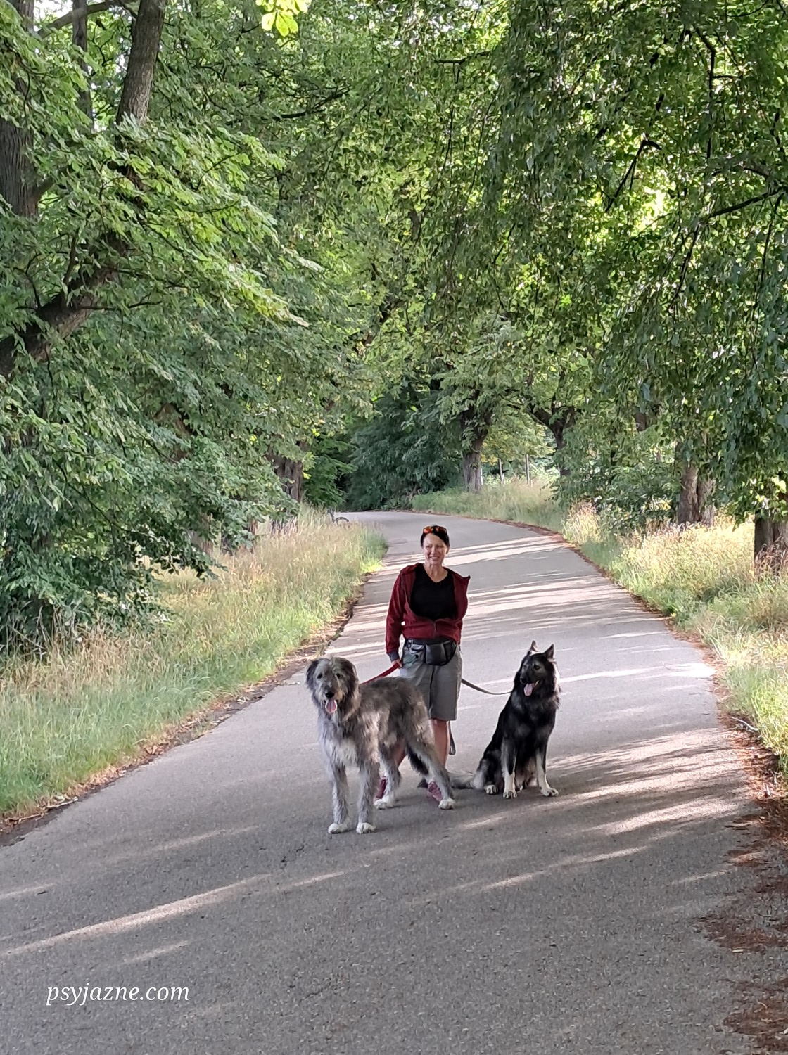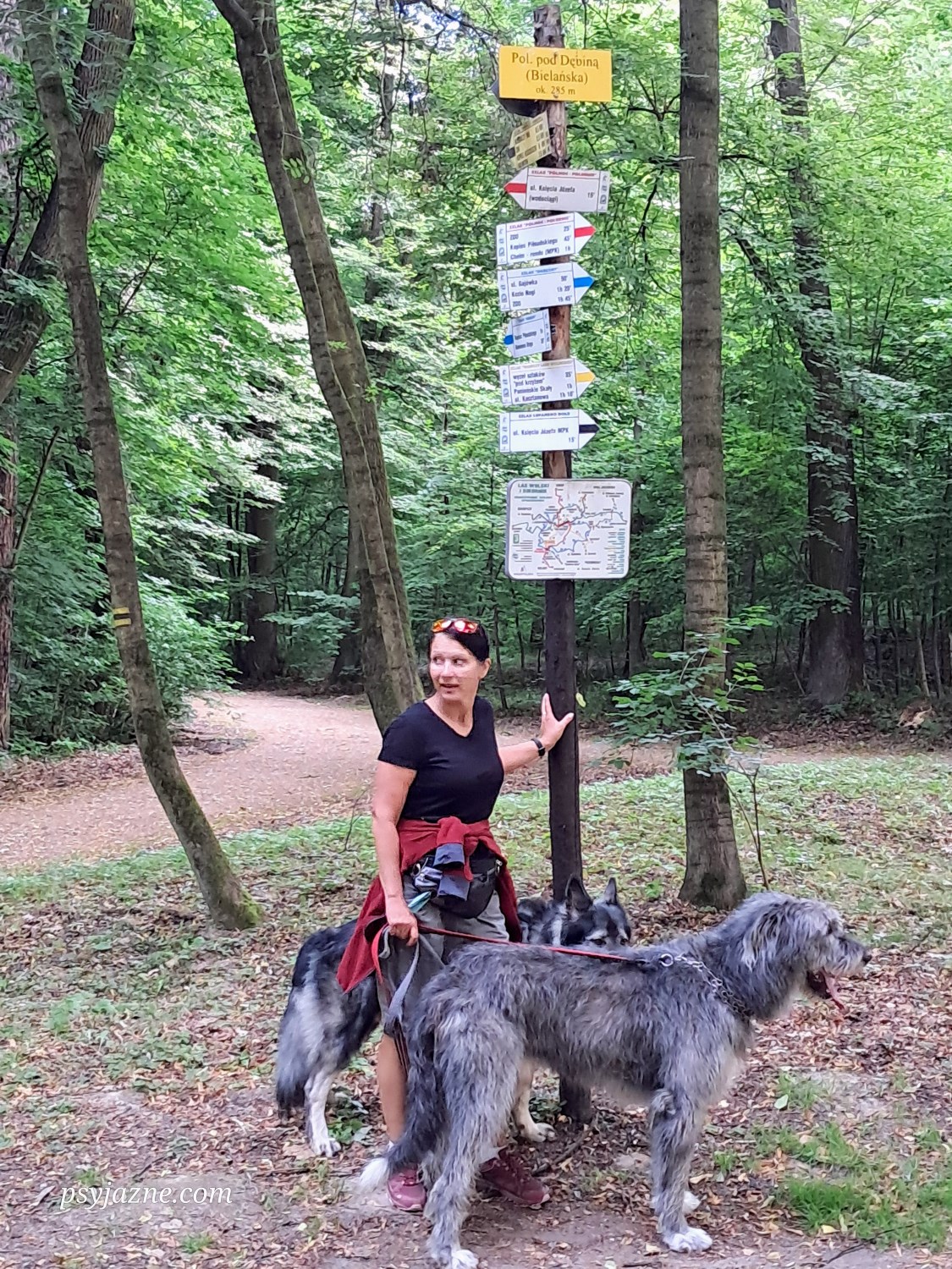 Idąc zastanawiamy się o ile większe jest prawdopodobieństwo spotkania w Lesie Wolskim dzików w porównaniu do szlaków beskidzkich, które tak często przemierzamy? Po niespełna 10 minutach znamy już odpowiedź: o 1, czyli 100%! Aleję do Kopca przecięło nam liczące około 20 osobników stado pod czujnym okiem odyńca, który złowrogo spojrzał na nasze psy. Na szczęście staliśmy w bezpiecznej odległości, mocno trzymając Hugo i Lucky’ego.