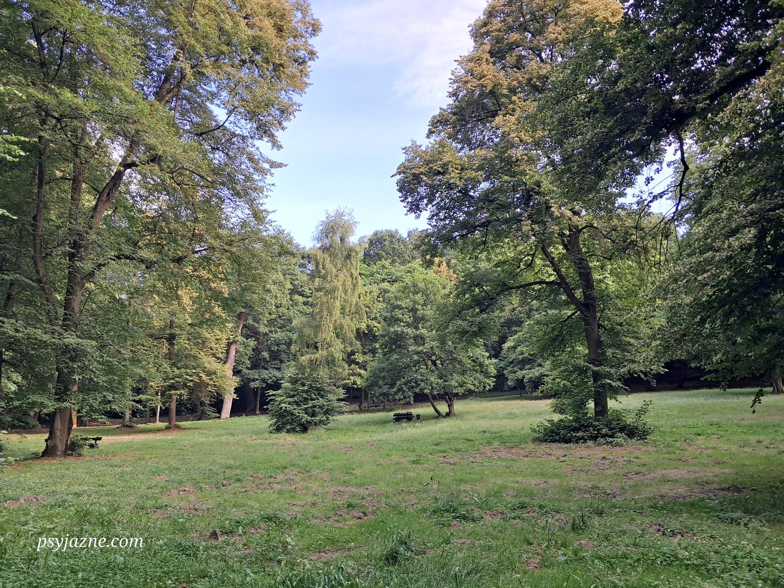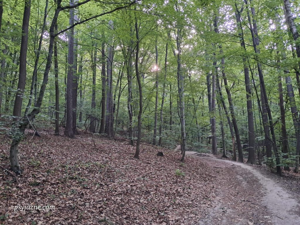 Kopiec zdobyty, schodzimy🙂 Pomalutku zmierzamy w kierunku żółtego szlaku mając nadzieję, że tym razem nie spotkamy „dzikiej rodziny”😉 Mijamy skąpaną już w słońcu Polanę Bielańską i Aleją Wędrowników dochodzimy do miejsca, gdzie zaczynaliśmy spacer.