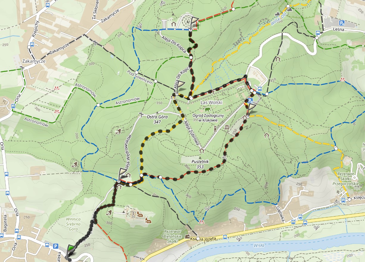 I tym razem wybieramy szlak czerwony, choć zdecydowanie krótszy niż ten ostatni (MSB, 137km) i podążamy w kierunku krakowskiego ogrodu zoologicznego.