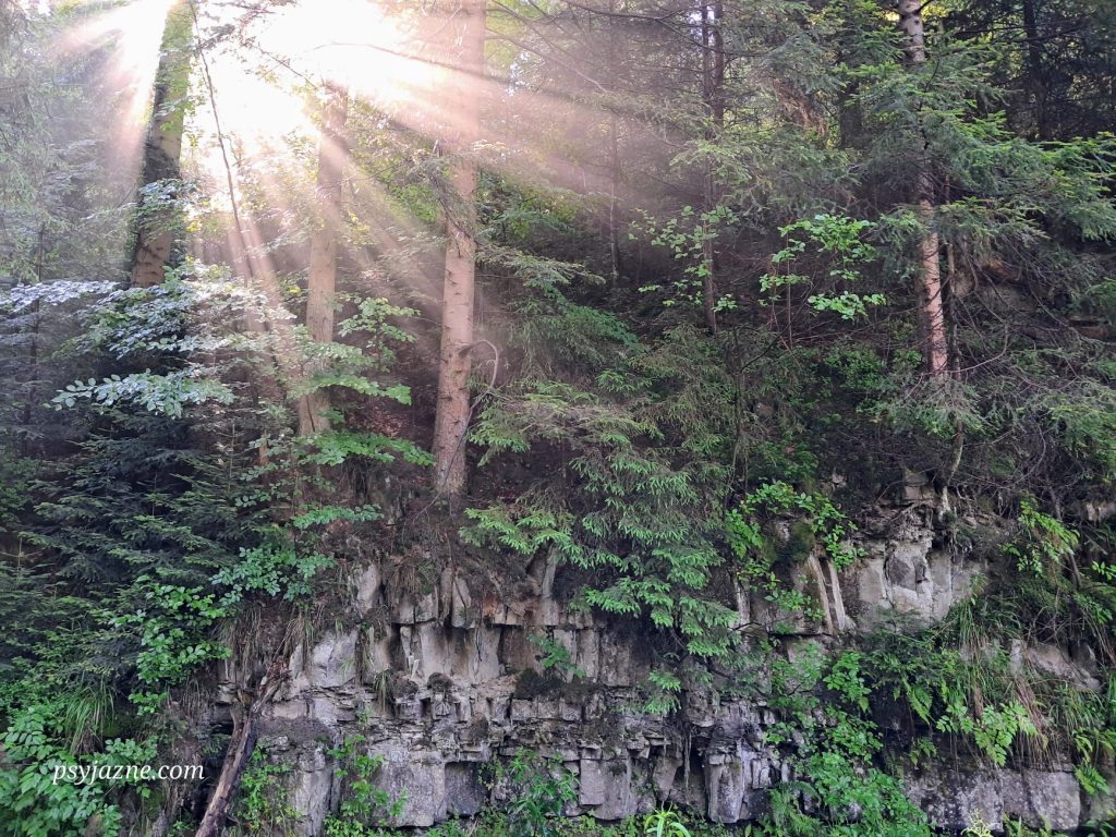 Hala Rysianka jest miejscem, z którego zaczynamy schodzić w stronę Żabnicy Skałki, a idziemy szlakiem koloru zielonego. Tak, jak przypuszczaliśmy, słońce robi swoje, więc zejście pod osłoną lasu bardzo nam się przyda. Ale zanim las, to jeszcze…