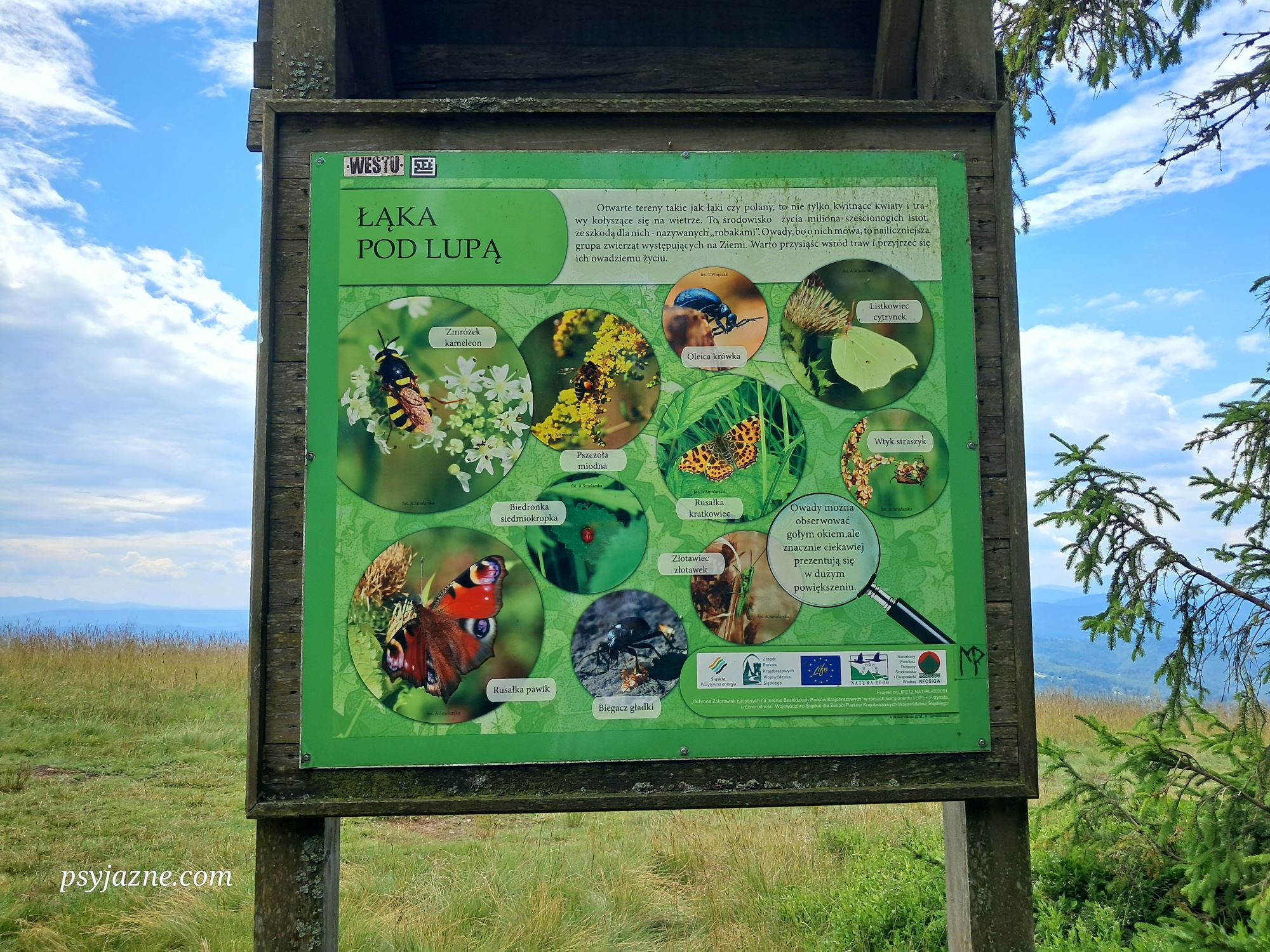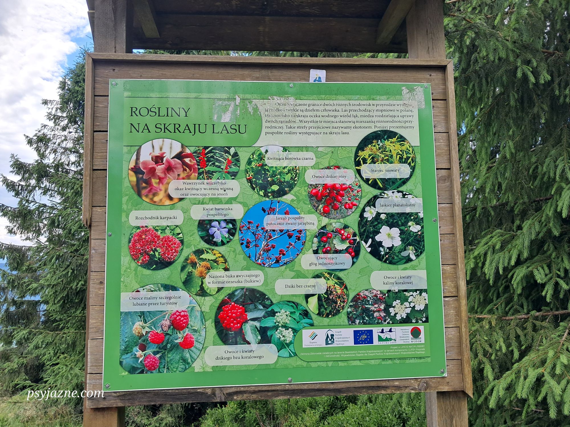 Swoją drogą, na trasie ustawiono kilka podobnych tablic z informacjami, dzięki którym można poznać przyrodę spotykaną na beskidzkich szlakach.