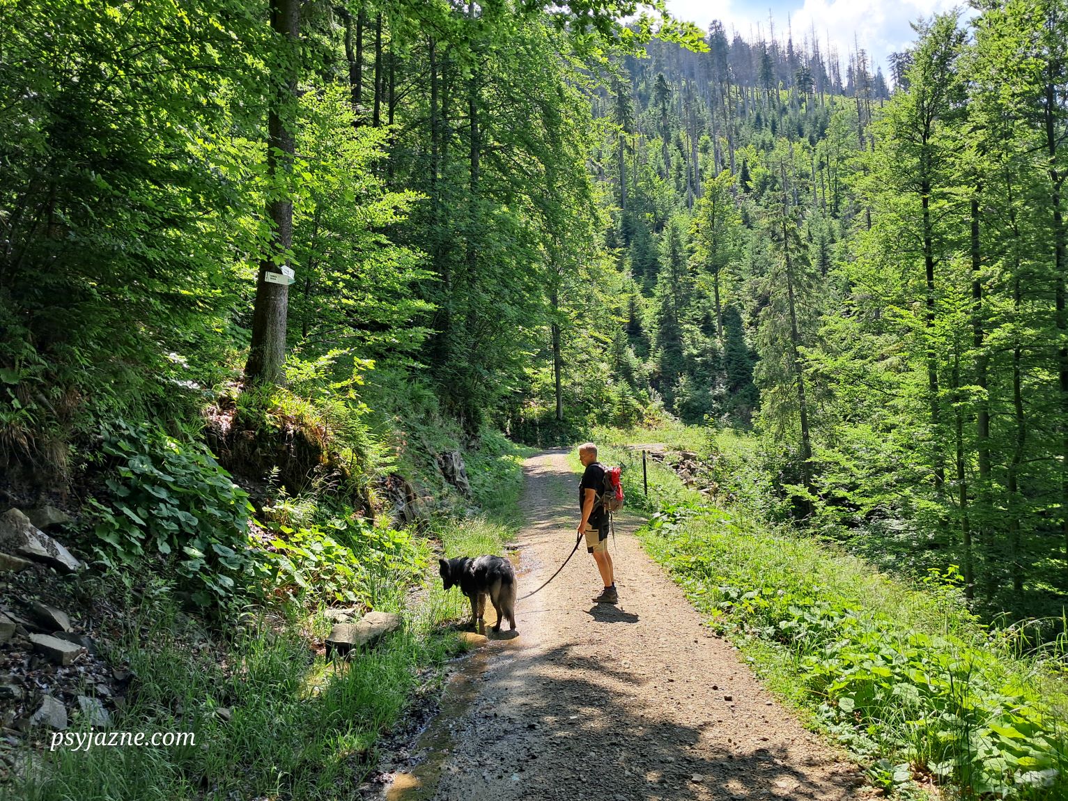 Do schroniska nie wejdziemy z psem, ale wokół niego jest tyle miejsca i ciekawostek, że o nudzie nie ma mowy. Ba, nawet można odbyć szybki trening na pieńku!
