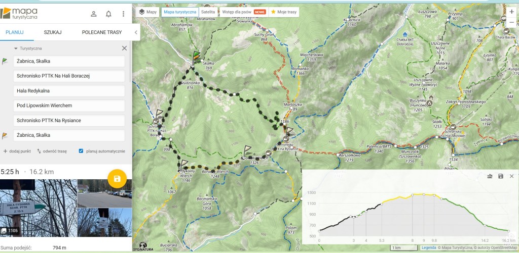 Na dziś zaplanowałam 16-to kilometrową pętelkę, która prowadzi tuż pod szczytami leżącymi w Grupie Lipowskiego Wierchu i Romanki oraz przechodzi przez kilka hal. Wycieczkę zaczynamy i skończymy w Żabnicy Skałce, gdzie na jednym z parkingów zostawiamy samochód. Jesteśmy kilka minut po godzinie ósmej, a przedzierające się przez korony drzew promienie słońca zapraszają na wspólną wędrówkę, w którą ruszamy czarnym szlakiem prowadzącym na Halę Boraczą i do znajdującego się na niej schroniska.