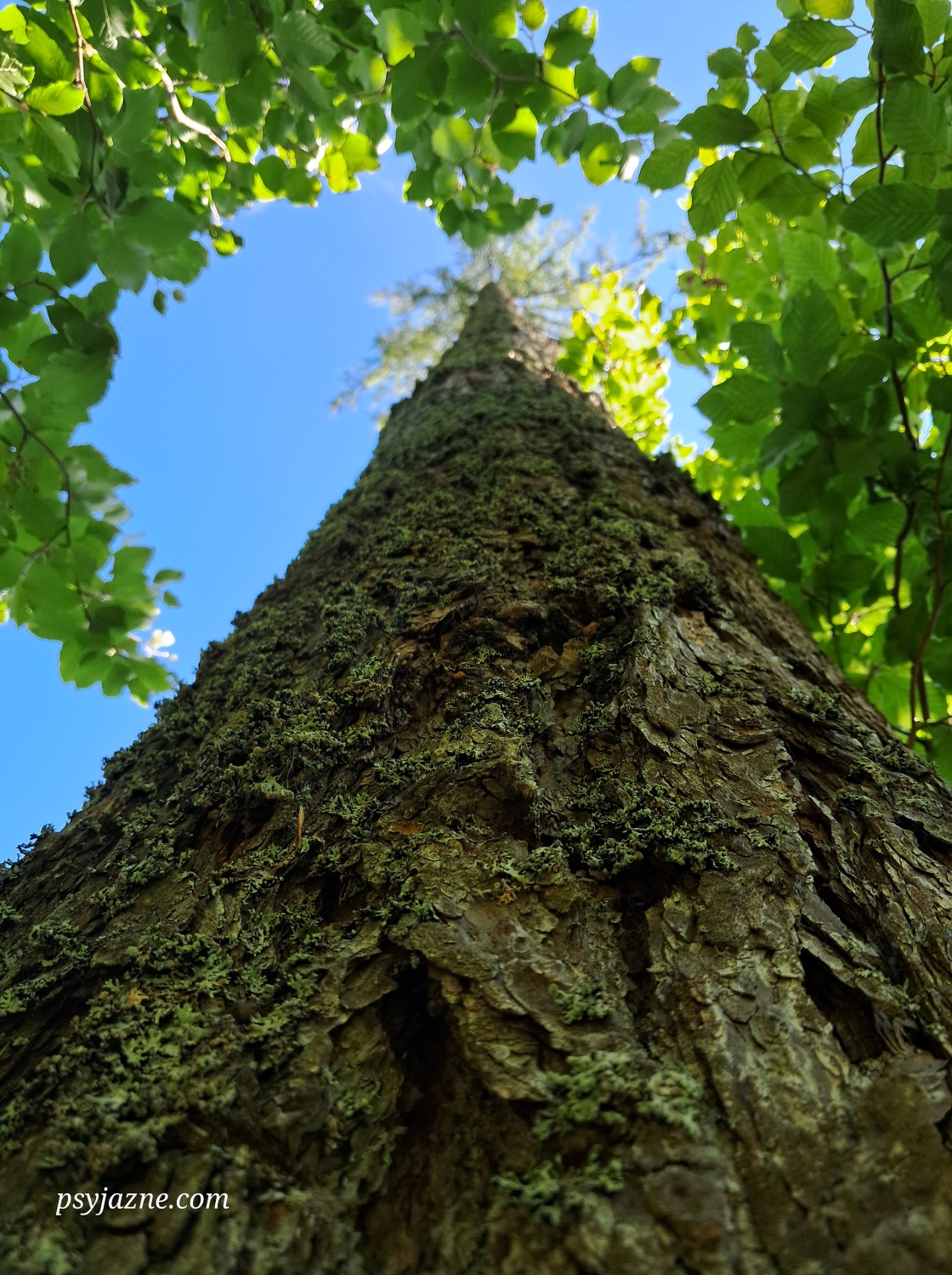 Najpierw jednak idziemy, co prawda za zielonym, ale w przeciwnym kierunku – na Muńcuł. Ścieżka teraz wygląda zupełnie inaczej: szeroka, w cieniu bukowo-jodłowego lasu, ale ku radości psa z jeszcze większymi kałużami. Ten odcinek chyba też nie cieszy się zbyt dużą popularnością, bo i tu nie spotykamy nikogo.