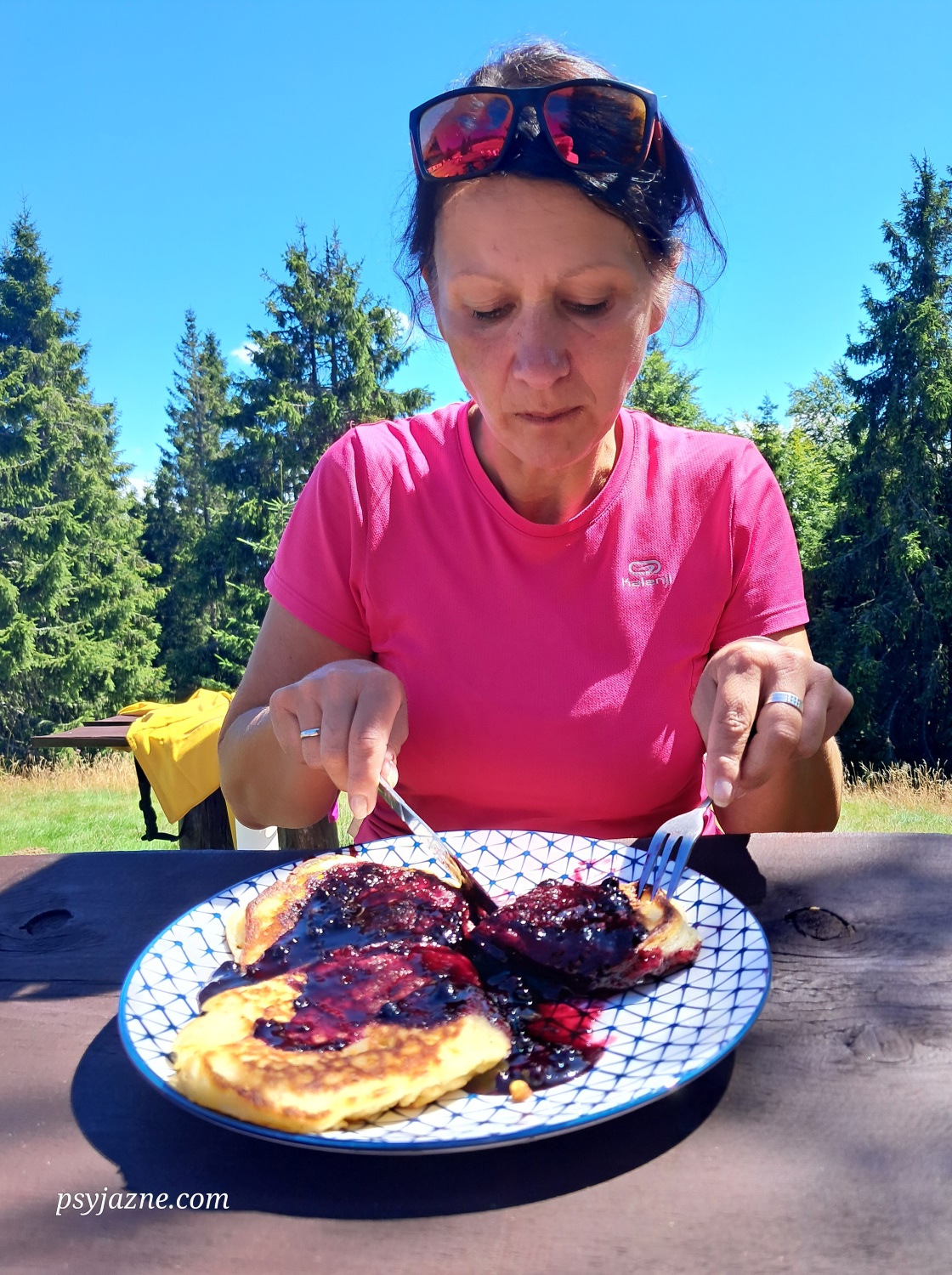 Zamawiamy “specjał” i siadamy przy jednym ze stołów rozstawionych wokół schroniska. W oczekiwaniu na swoją kolej słyszymy pochlebne opinie zajadających się racuszkami turystów, a ślinka cieknie od samego słuchania. W końcu doczekaliśmy się i…