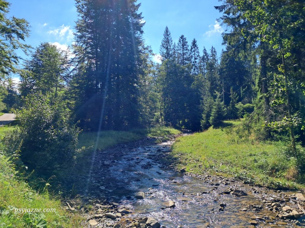 Przed nami jeszcze około 3-3,5km do parkingu drogą, która z szutrowej przechodzi w asfalt. Z pewnością jest to najmniej ciekawy odcinek dzisiejszej wycieczki, ale cień drzew i szumiący potok w pewnym stopniu rekompensują “niedogodności”.