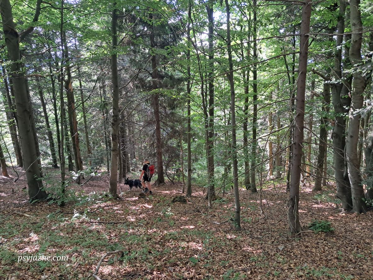 Dochodzimy na drugi koniec polany, skąd jest już około 250 m na szczyt Mogielicy. Zaczyna się tu również granica Rezerwatu Mogielica utworzonego głównie dla ochrony głuszca, ale i innych gatunków ptaków. I właśnie z uwagi na rezerwat i obecność z nami Huga nie zdobywamy szczytu, tym bardziej, że byliśmy na nim już dwukrotnie.