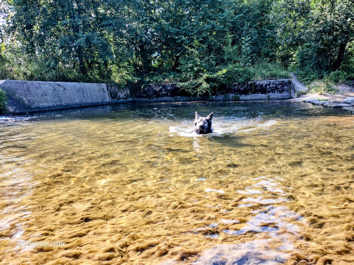 Zgodnie z prognozami, dzień jest gorący, więc z przyjemnością zanurzamy się w cień drzew. Dla Huga mamy małą niespodziankę na koniec wycieczki: kąpiel w Łososinie!