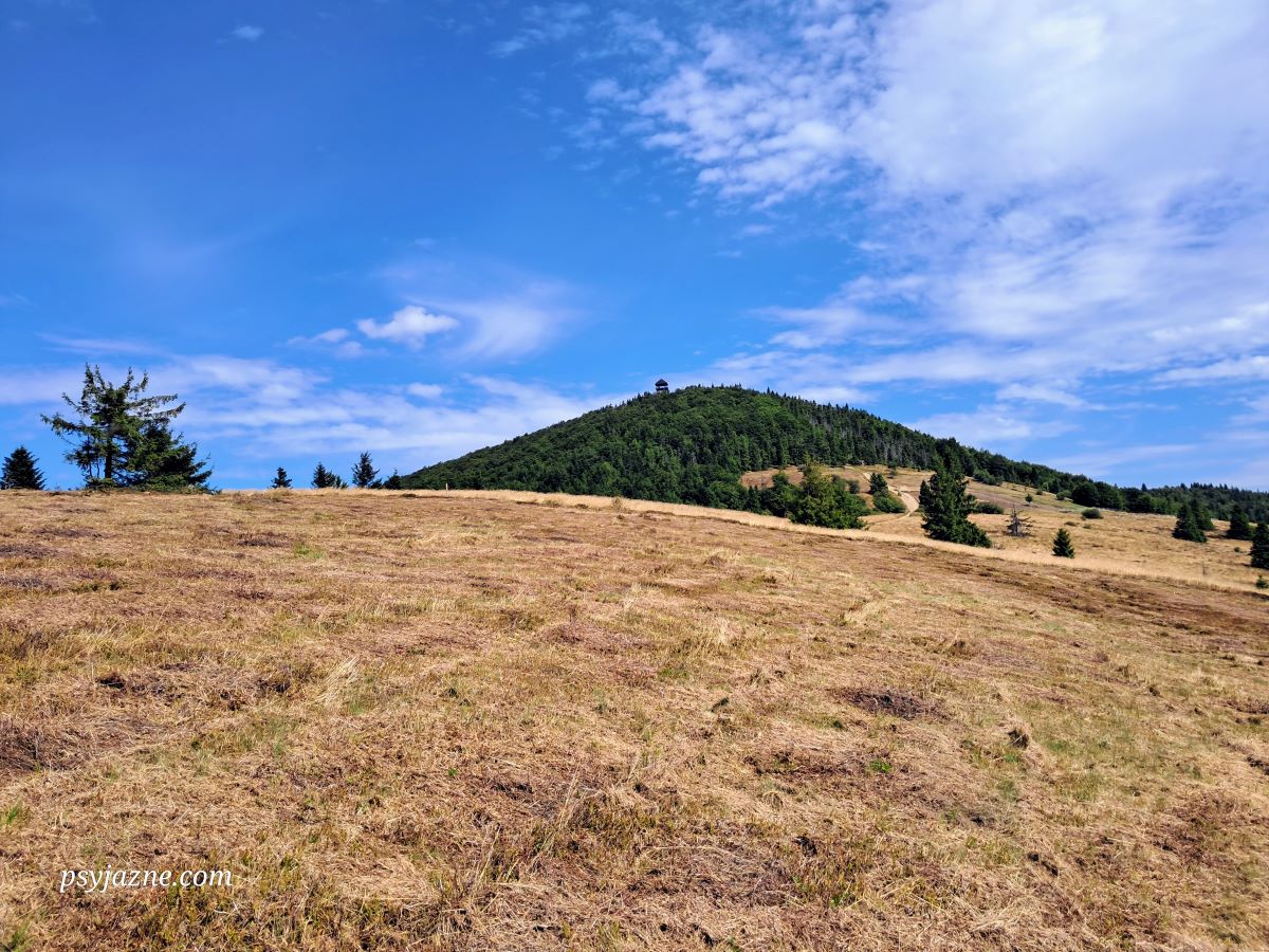 Na całkowicie zalesionym szczycie, na którym o dziwo nie ma tak charakterystycznej dla tego regionu ławeczki, jest miejsce na ognisko i siedziska ze ściętych drzew.