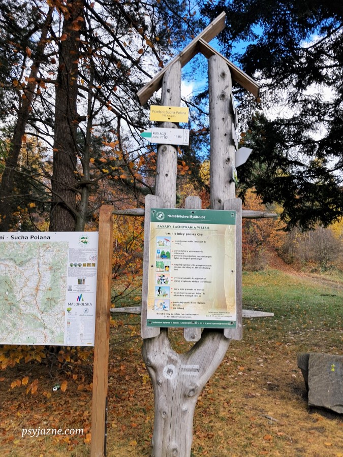 W żaden sposób nie zniechęceni maszerujemy teraz w kierunku Suchej Przełęczy, mijając po drodze odejście żółtego szlaku, który prowadzi przez Dobczyce aż do Wieliczki, a także zdobywając Kamiennik Południowy.