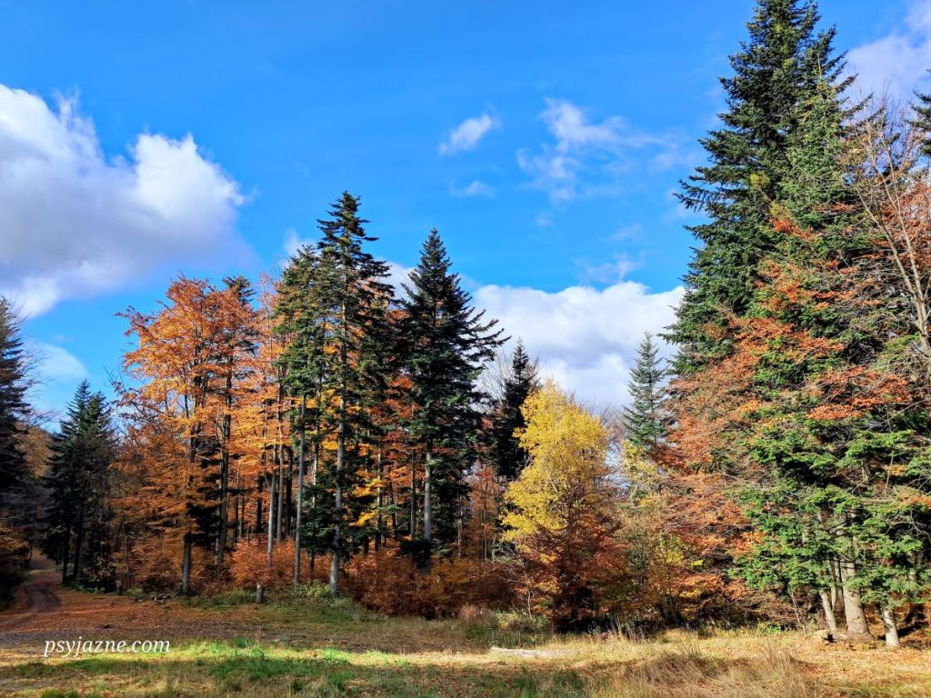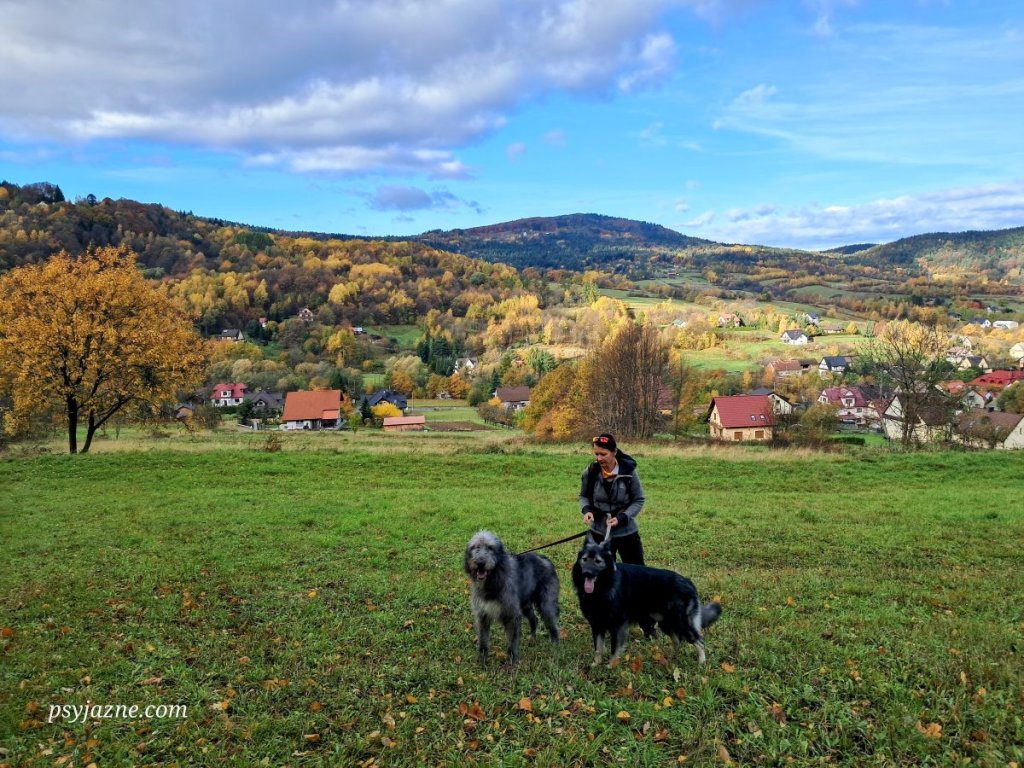Okres jesienny, pomimo coraz krótszego dnia, to cudowny czas na wędrówki bliższe i dalsze. Towarzyszące w tych wędrówkach: poranne mgły, kolory i promienie słońca na twarzy tworzą wyjątkowy klimat, w który warto – choćby na chwilę się zanurzyć. Tak było i tym razem, gdy wybraliśmy się z psami na przedpołudniowy spacer Masywem Kamiennika.