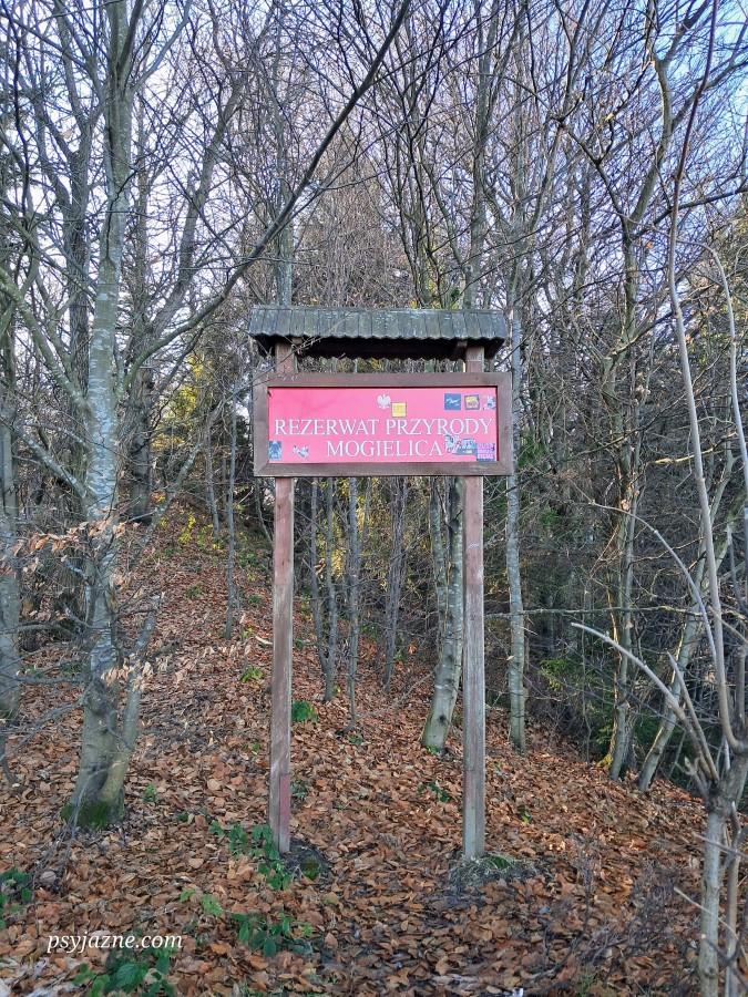Na wysokości ok. 1070 m n.p.m., gdzie znajdujemy resztki listopadowego śniegu, widać szczyt Mogielicy z wieżą widokową. Przemierzamy polanę, z której podziwiać można beskidzką panoramę i dochodzimy do granicy rezerwatu.