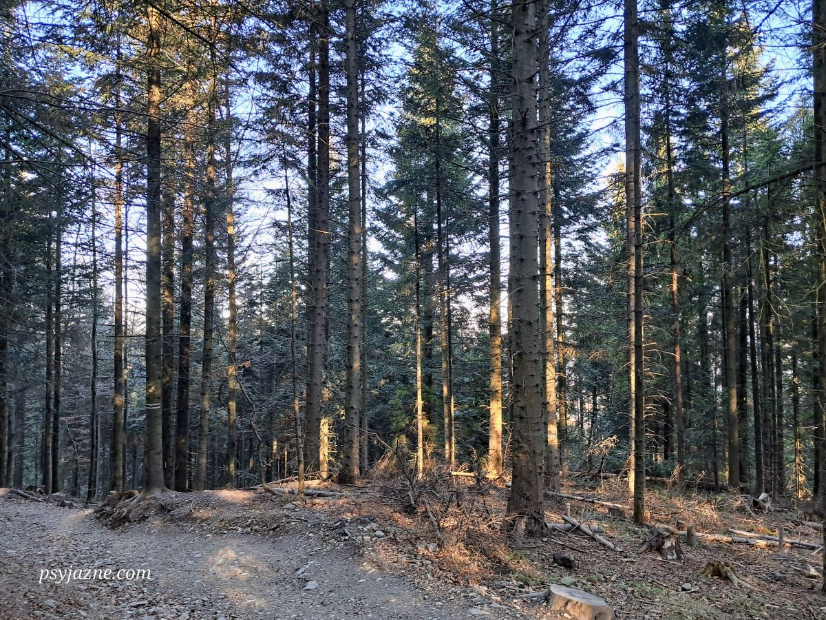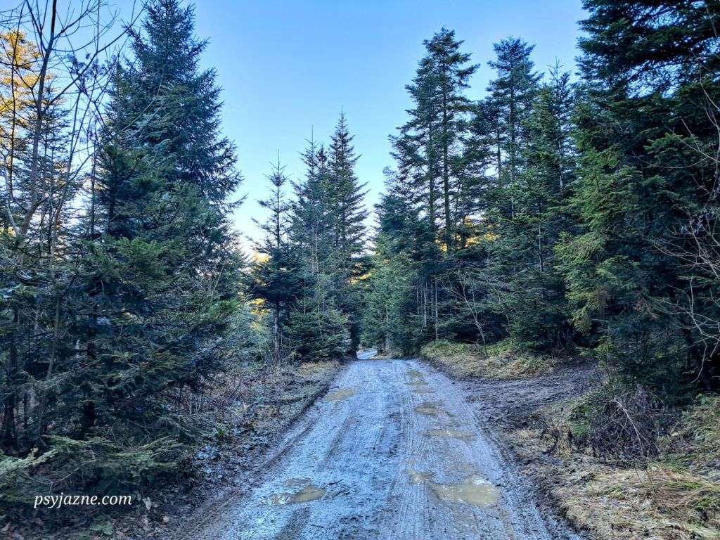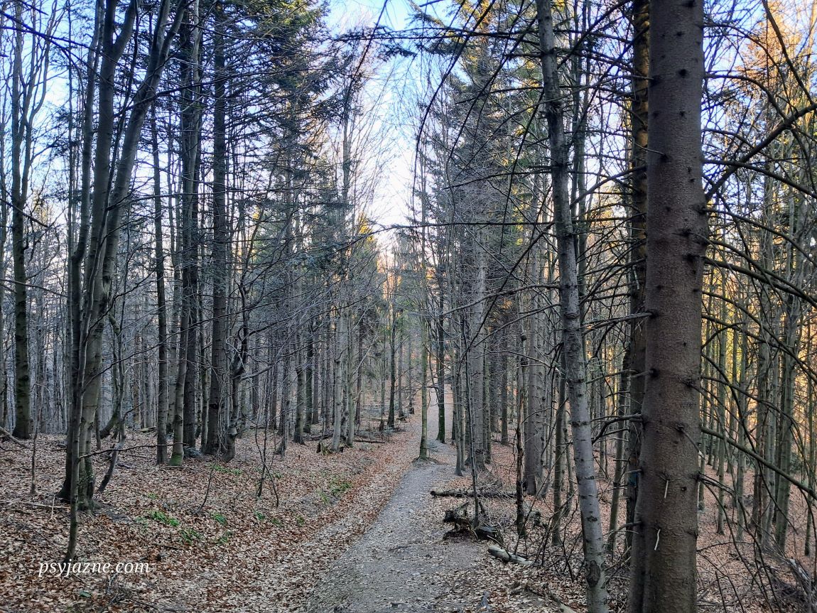 Idę nim może 250-300 m, aż do miejsca gdzie skręca pod kątem prostym w lewo, prowadząc na szczyt Mogielicy.