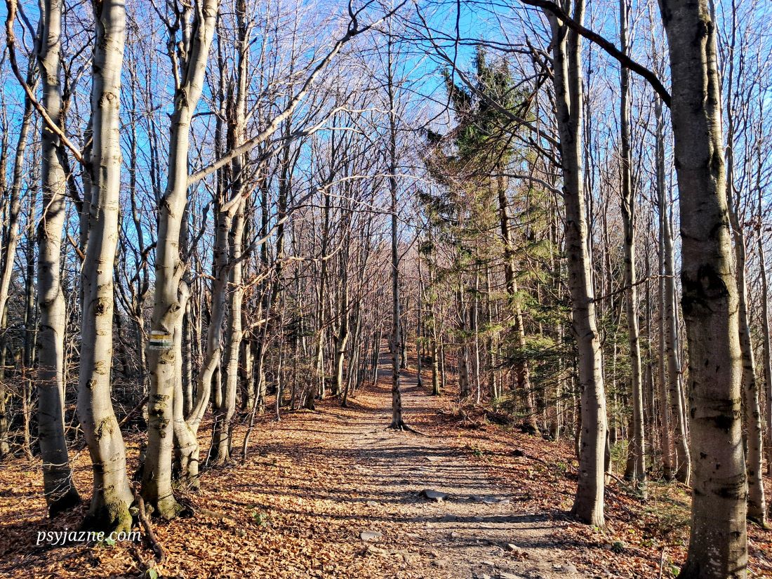 Wszystko co dobre musi się kiedyś skończyć. Czas wracać na Przełęcz Marszałka, ale inną drogą. Przemierzam polanę w kierunku wschodnim, poniżej granicy rezerwatu i zanurzam się w bukowy las.