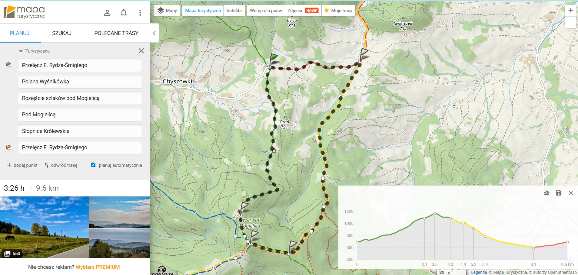 Trasa, którą opisałam jest równie interesująca, widokowa i pozwala na wędrówkę z psem. Zamieszczam mapę z jej przebiegiem, ale z wejściem na szczyt Mogielicy, co gorąco polecam wszystkim turystom bez psiego towarzystwa. Idąc z Hugo, obeszłam rezerwat od strony zachodniej i południowej na wysokości 1070-1080 m n.p.m. A dystans wynoszący niespełna 10 km jest idealny na wędrówkę o każdej porze roku!