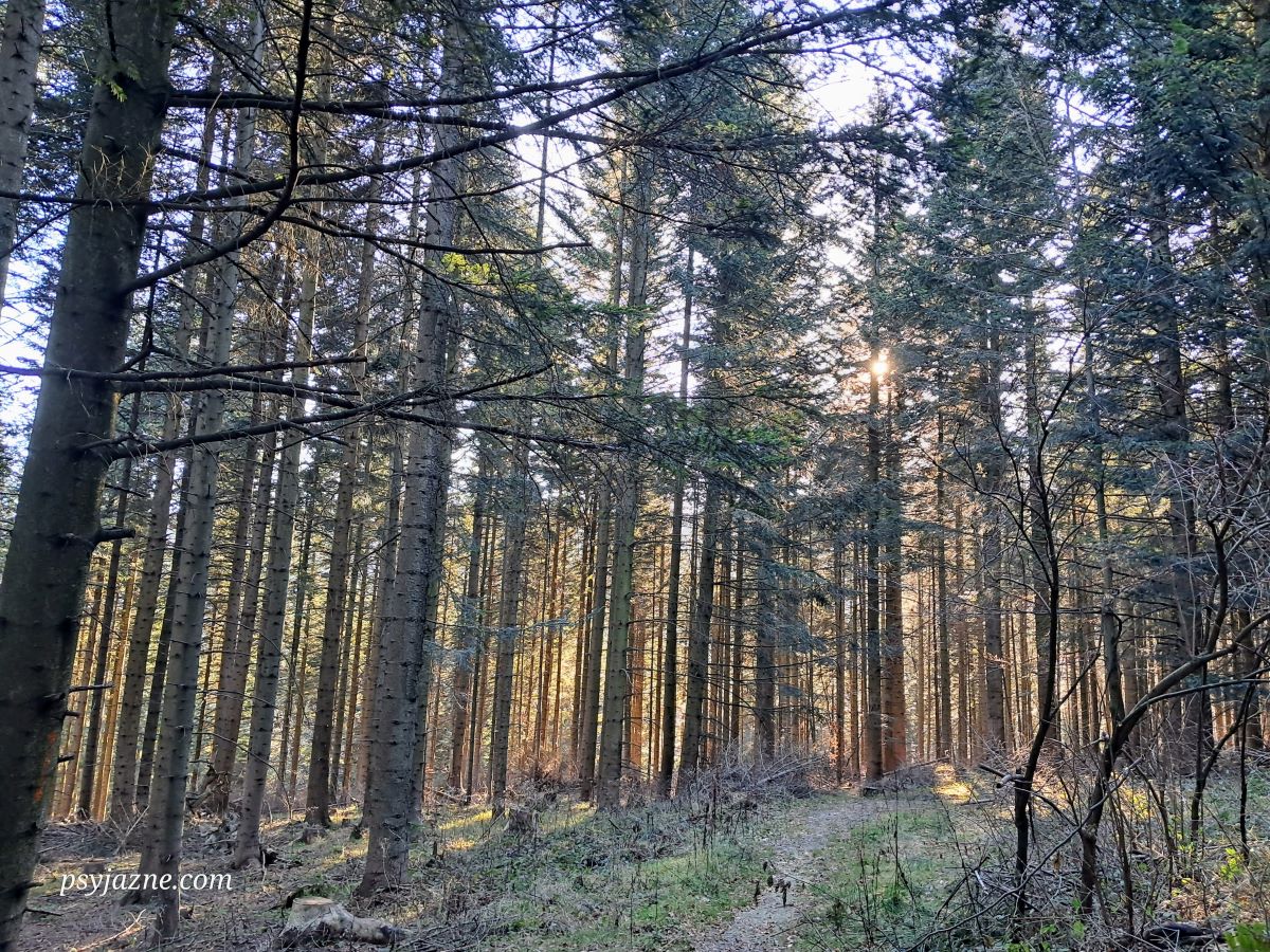 Szlak prowadzi wzdłuż polanki, po minięciu której wchodzimy do lasu.