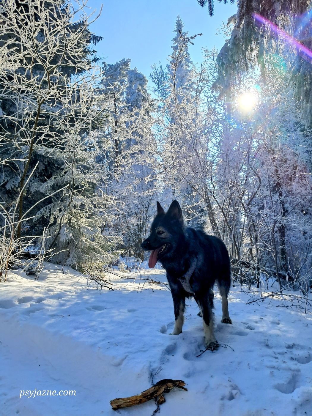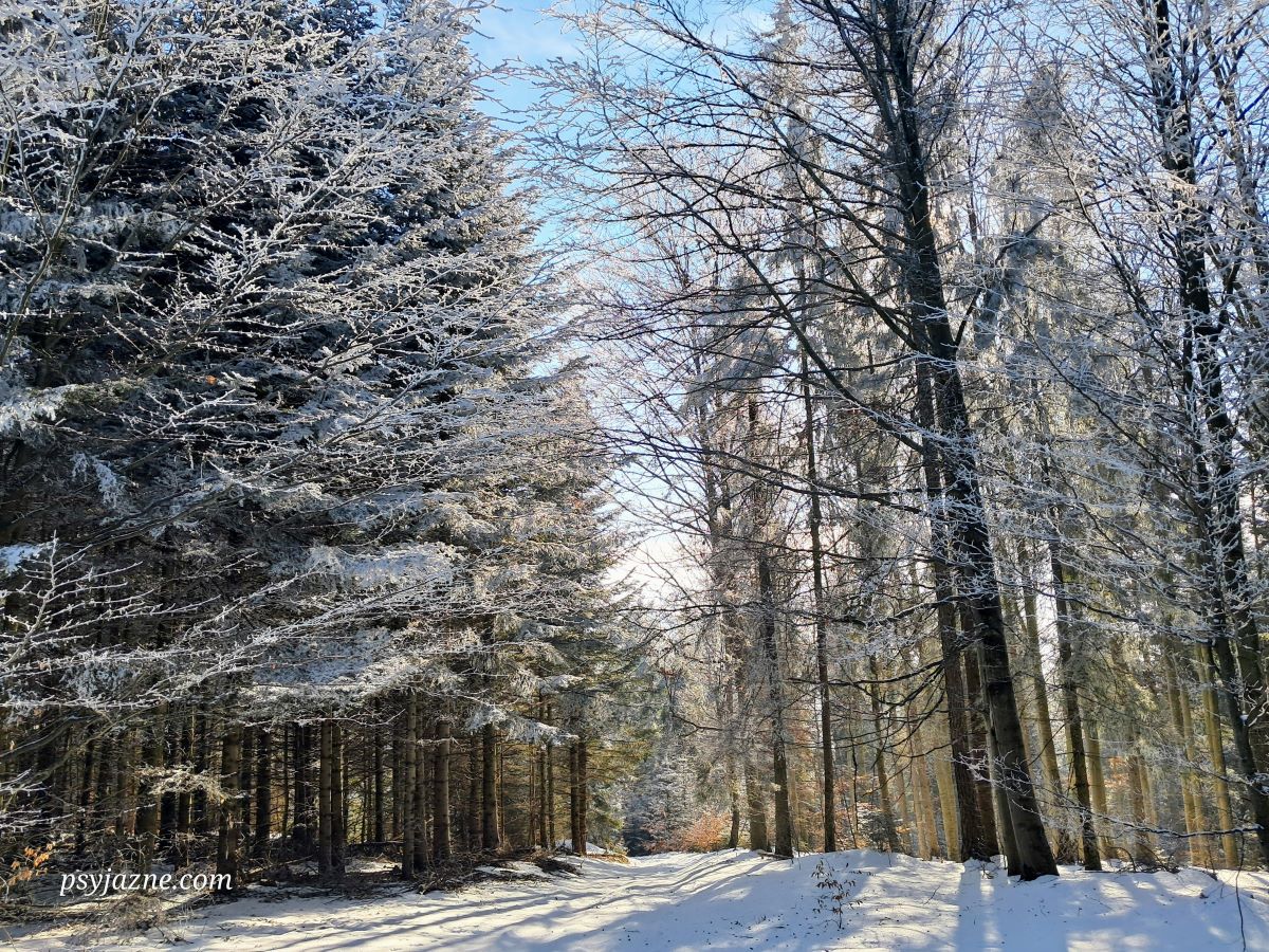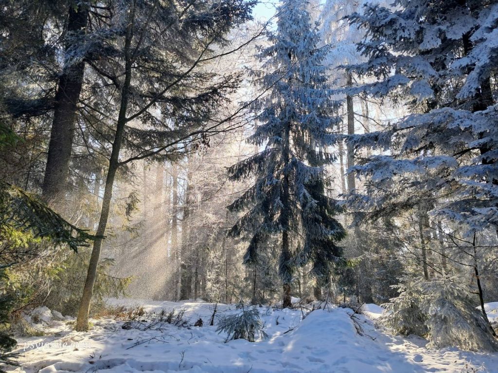 Mijamy kilka zabudowań, parę razy na rozgrzewkę rzucamy patykiem, po czym zanurzamy się w otchłań zimowego lasu. A ten wygląda po prostu obłędnie!