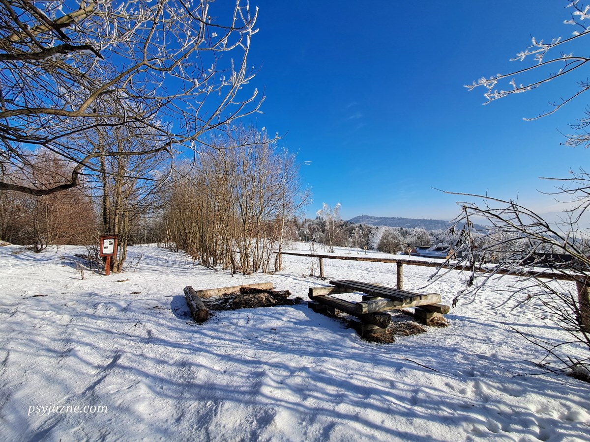 Z polany roztaczają się rozległe widoki na Kotlinę Rabczańską, Gorce oraz wznoszące się nad nimi Tatry. Niestety nie dziś. Towarzyszące nam, podobnie jak dwa tygodnie wcześniej na Turbaczu, zjawisko inwersji temperatury i ścielące się nad Kotliną morze mgieł, skutecznie zasłania górską panoramę.