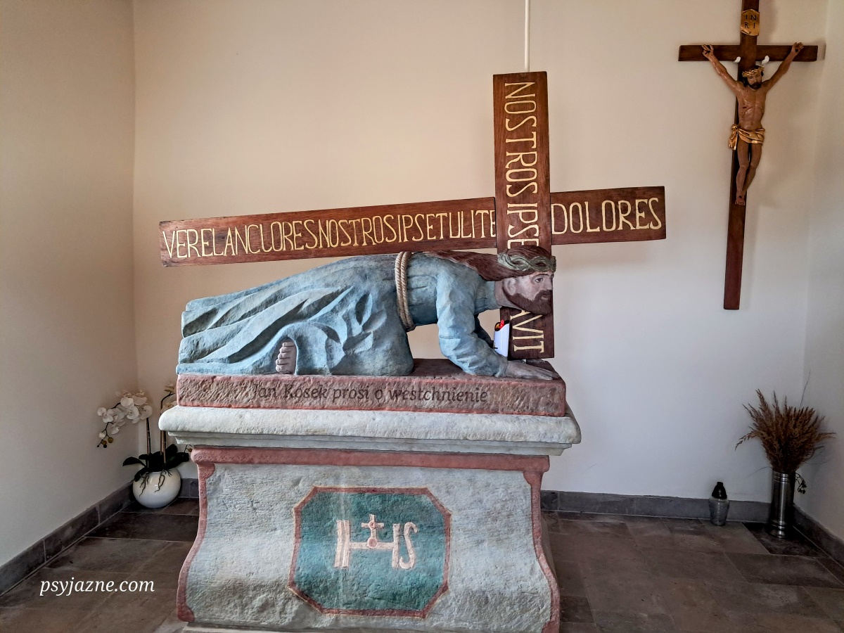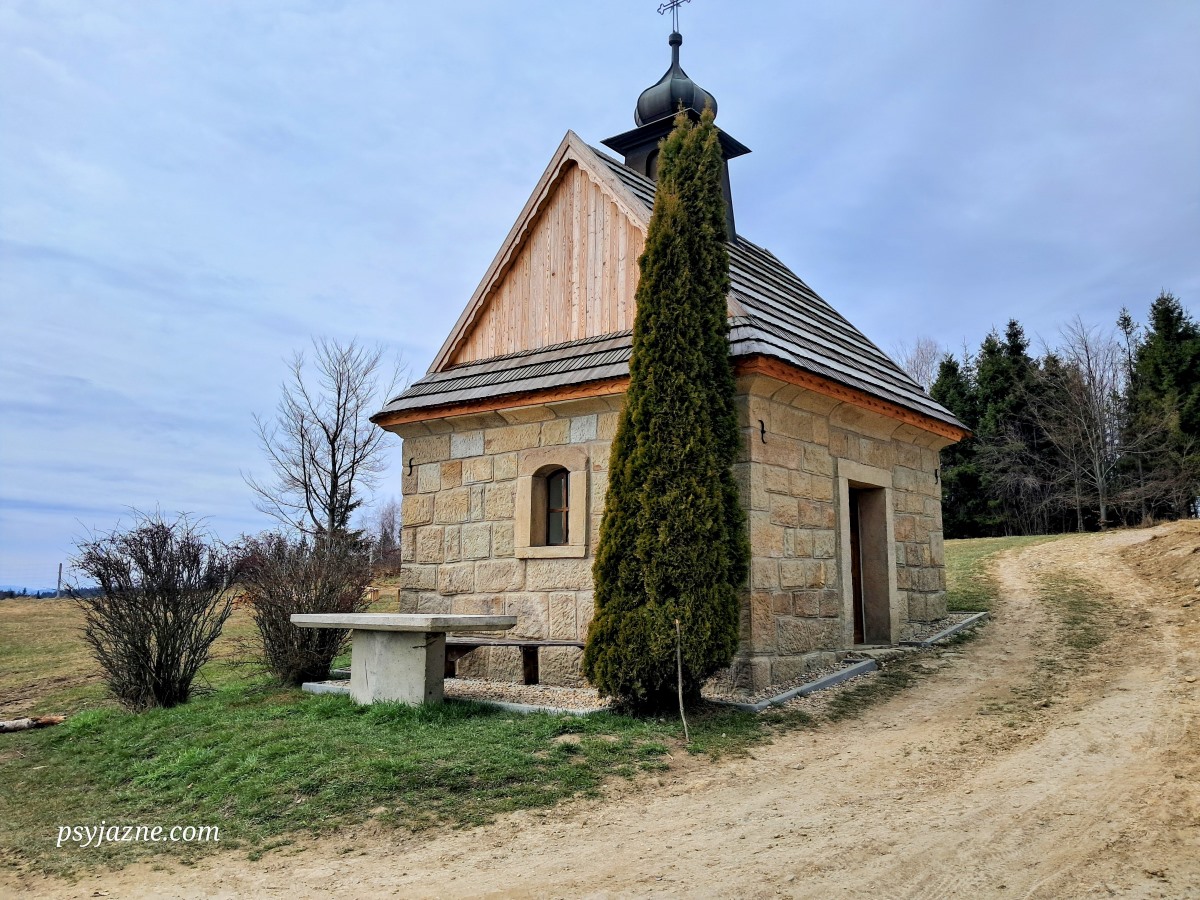 Na przełęczy znajduje się kapliczka z początku XX stulecia ufundowana przez Jana Koska, w której znajduje się rzeźba Chrystusa upadającego pod krzyżem. Zgodnie z podaniem rzeźbę przewożono z Sidziny do Kalwarii Zebrzydowskiej, a transportujące ją woły stanęły w tym miejscu i nie chciały iść dalej. Uznano to za znak Boży i wybudowano kaplicę.