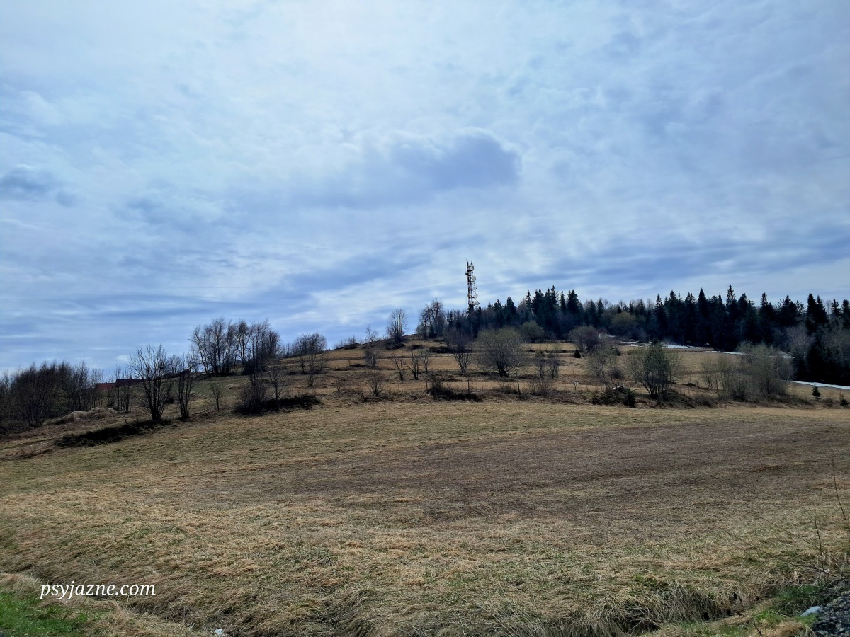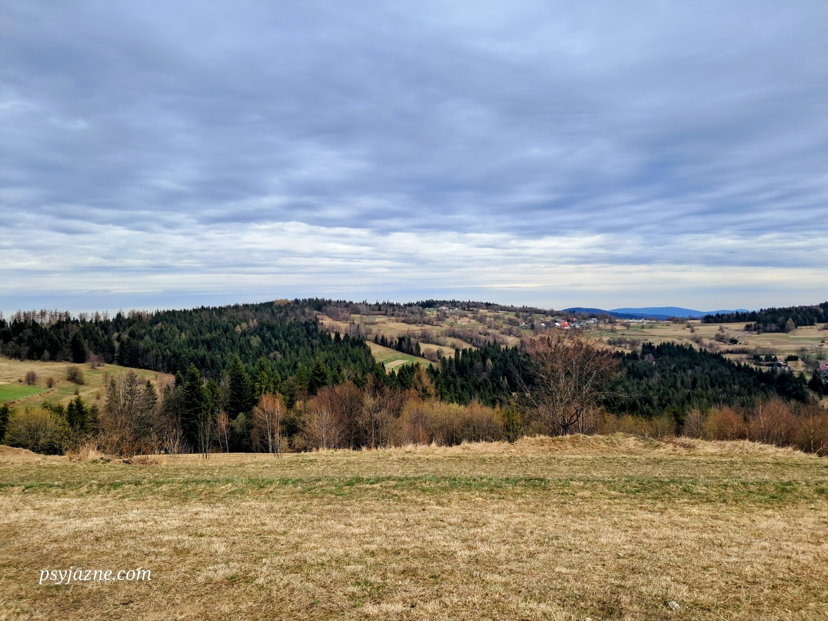 Ogromna polana jest fantastycznym miejscem widokowym na Beskid Wyspowy i całą panoramę Tatr. Niestety, przy dzisiejszej pogodzie tę drugą muszę sobie odtworzyć z pamięci.